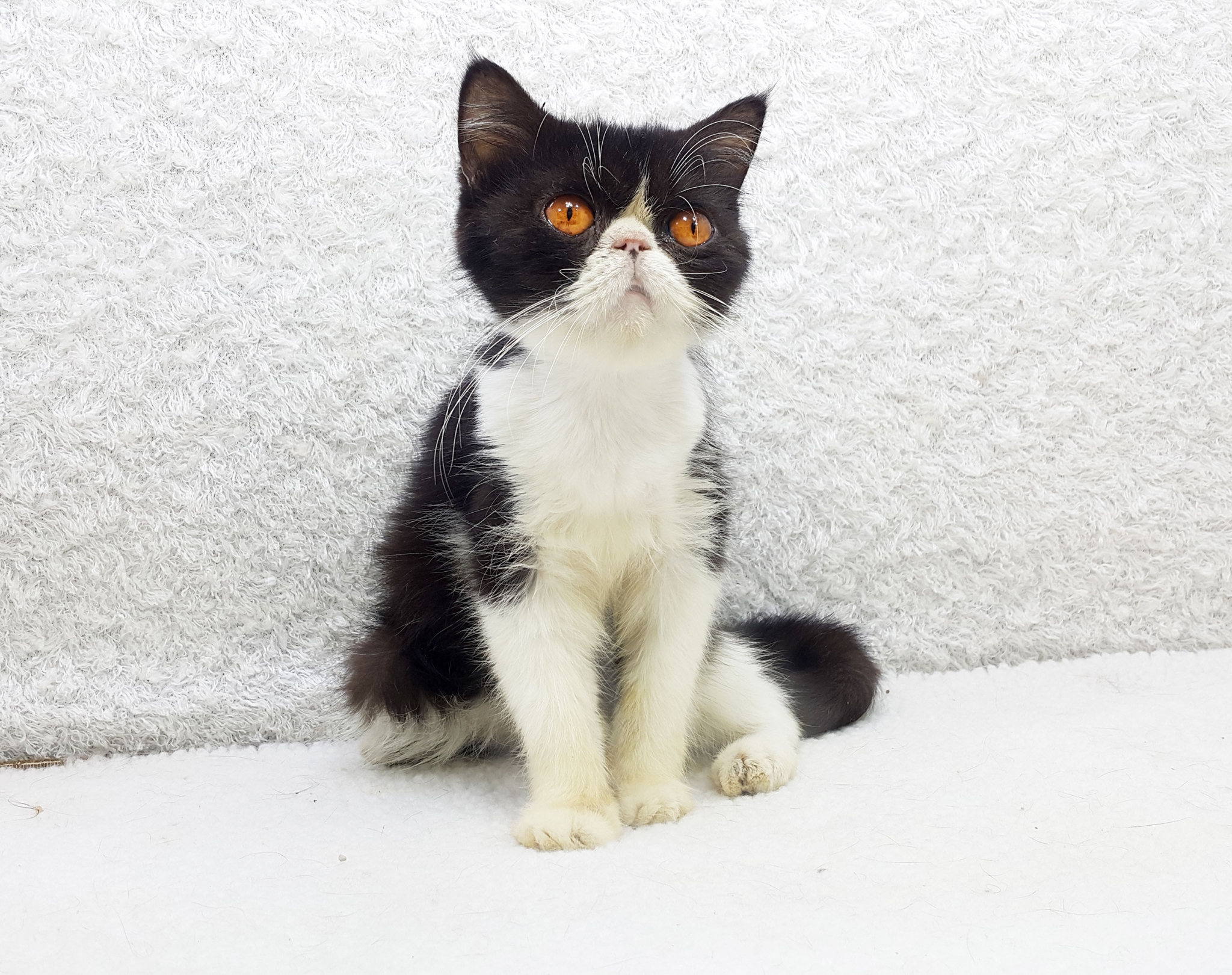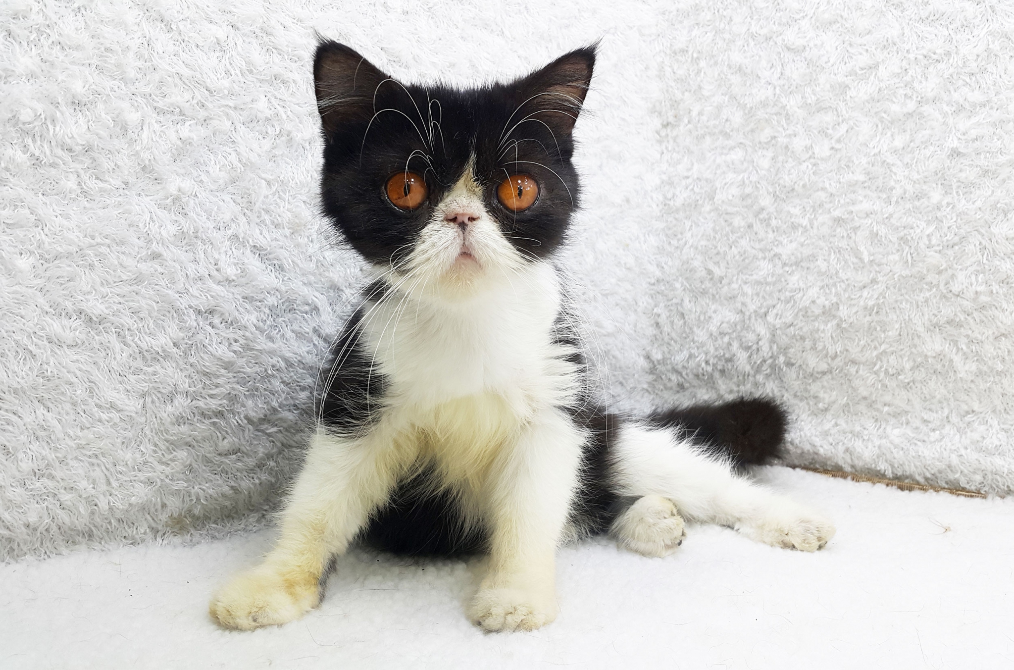 ขายแมวเอ็กโซติกช็อคแฮร์ สีขาวดำ เพศเมีย 6 เดือน