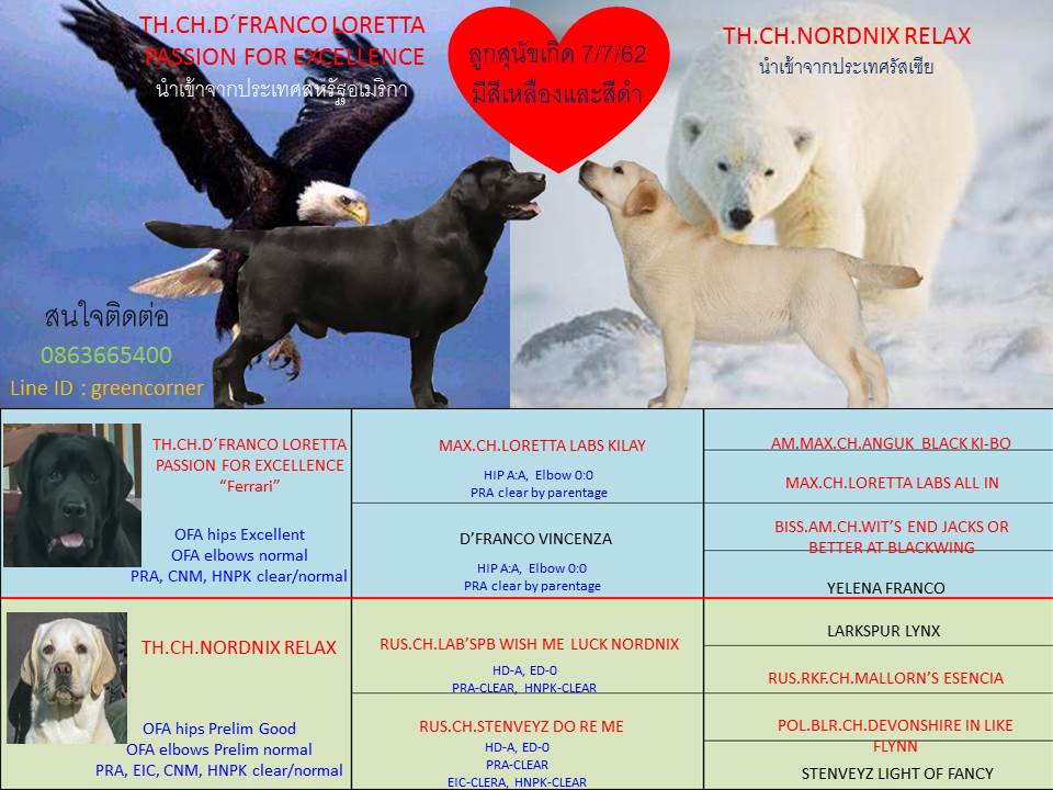 ลูกสุนัขลาบราดอร์เกิด 7 กรกฎาคม 2562 พ่อแม่ เฟอร์ร่ารี่ กะ รีแล็กซ์ มีทั้งสีเหลืองและสีดำ