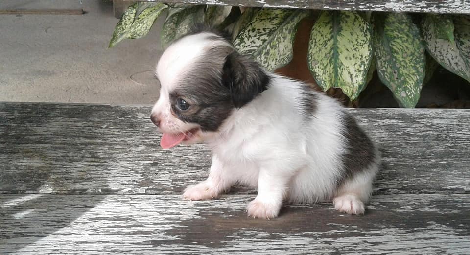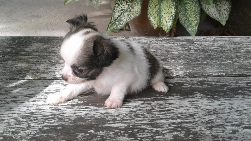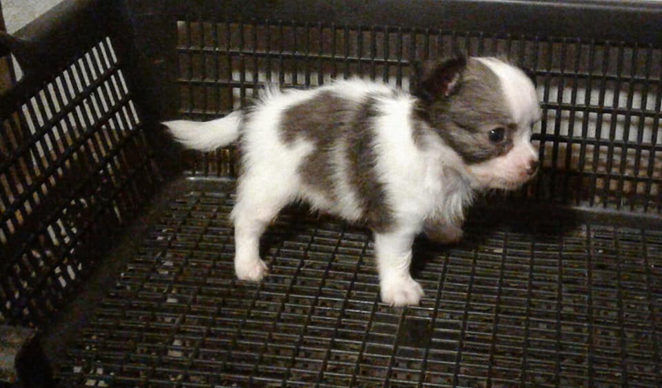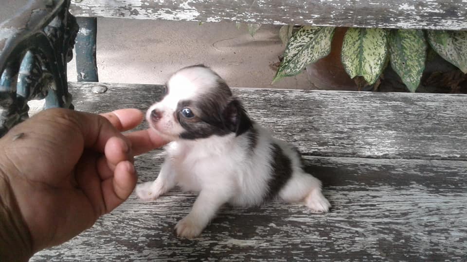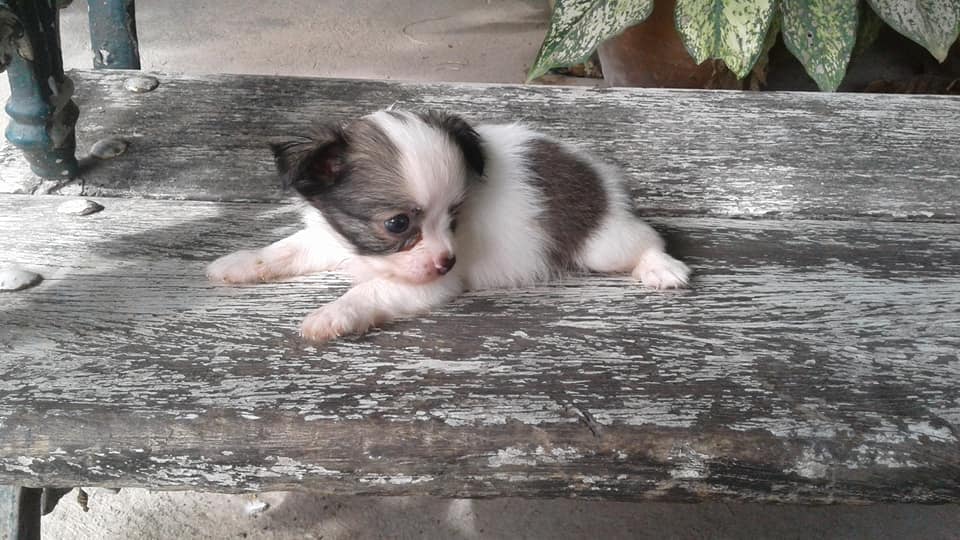 ลูกชิวาวาขนยาวสีแฟนซีขาวเทาเพศผู้อายุเดือนกว่าโทร0878080820อยู่ปทุมธานี