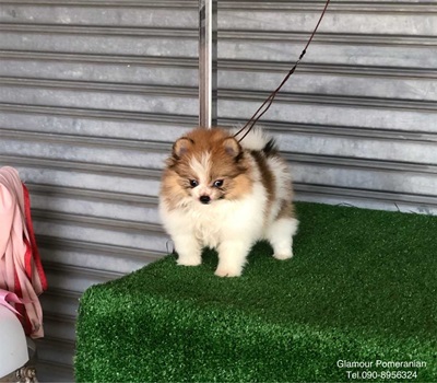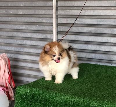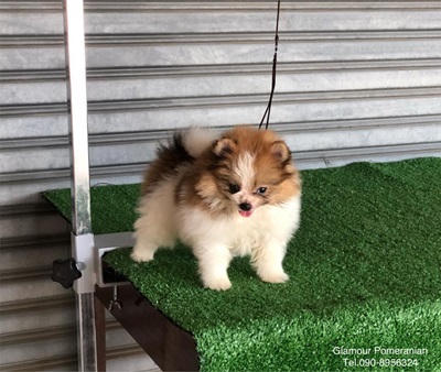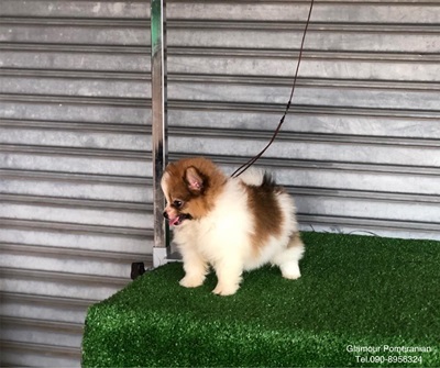 จำหน่ายปอมเมอเรเนียน เพศผู้ สีปาร์ตี้ขาวส้ม ฟอร์มสวย สายเลือดดี มีใบเพ็ดดีกรี