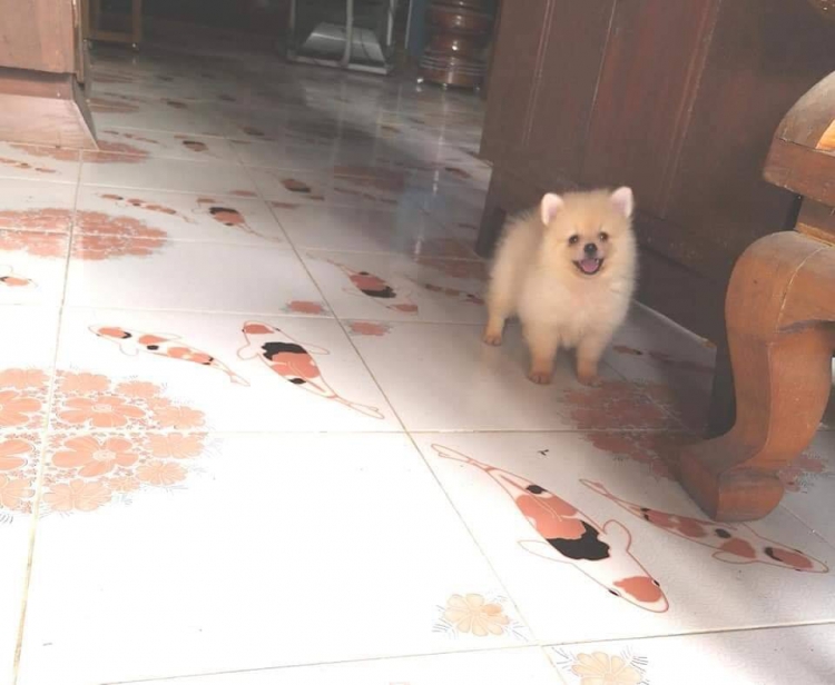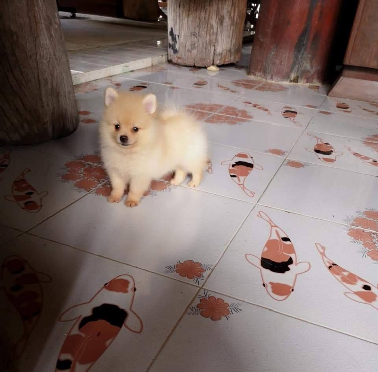 ปอมเพศผู้ สีขาวครีม ขนแน่น น่ารักแข็งแรง สวย 4500 เท่านั้นพร้อมย้ายนะค่ะ