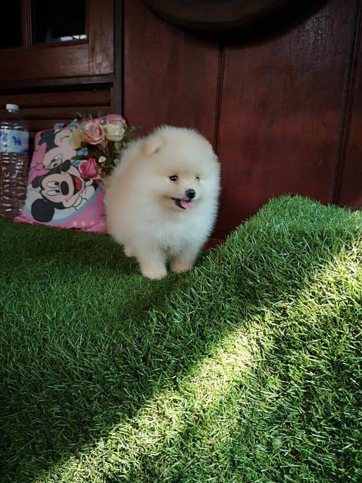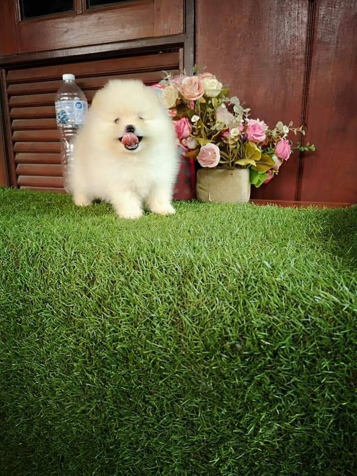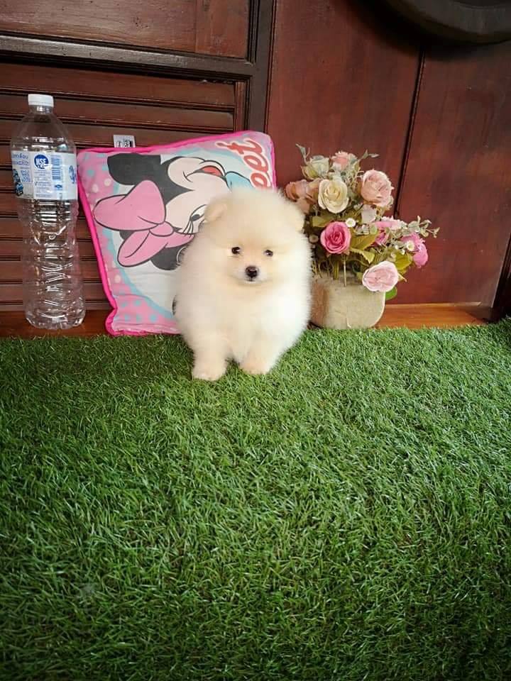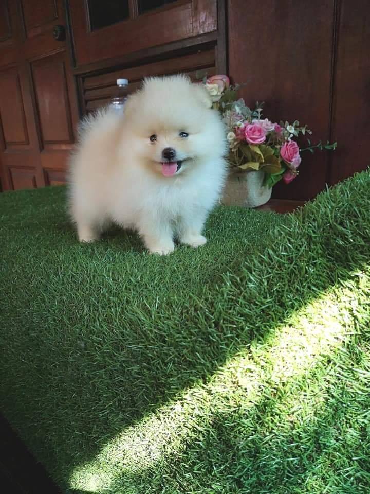 ปอมเพศผู้ สีขาวครีม ขนแน่น ฟอร์มใบเพ็ด น่ารักแข็งแรง สวย พร้อมถ่ายพยาธิและฉีดวัคซีนตามกำหนด