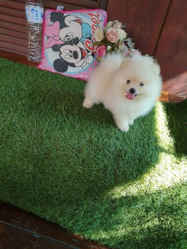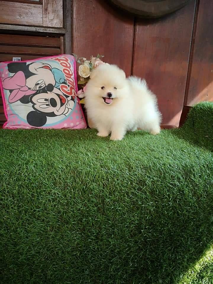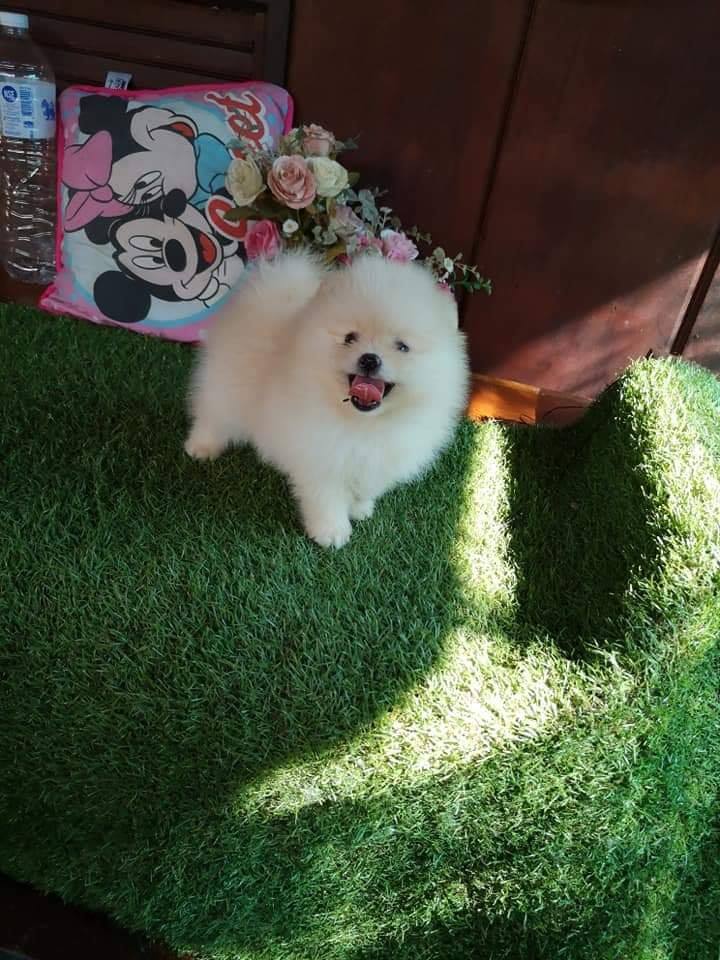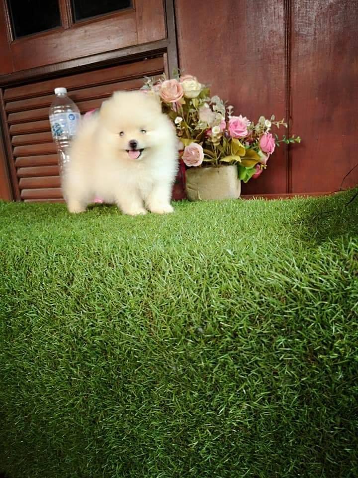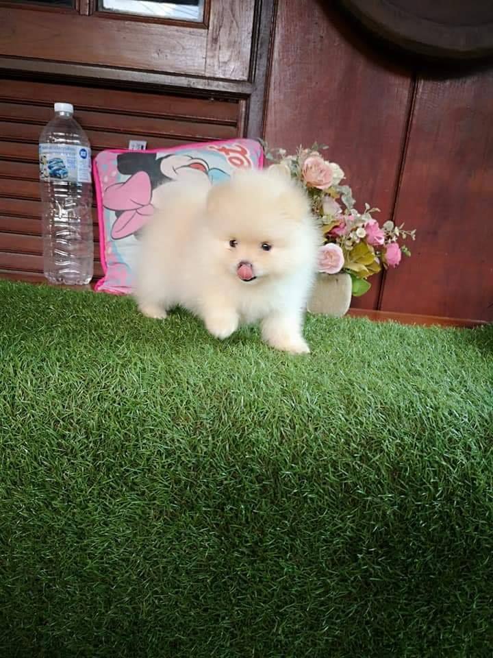ปอมเพศผู้ สีขาวครีม ขนแน่น ฟอร์มใบเพ็ด น่ารักแข็งแรง สวย พร้อมถ่ายพยาธิและฉีดวัคซีนตามกำหนด