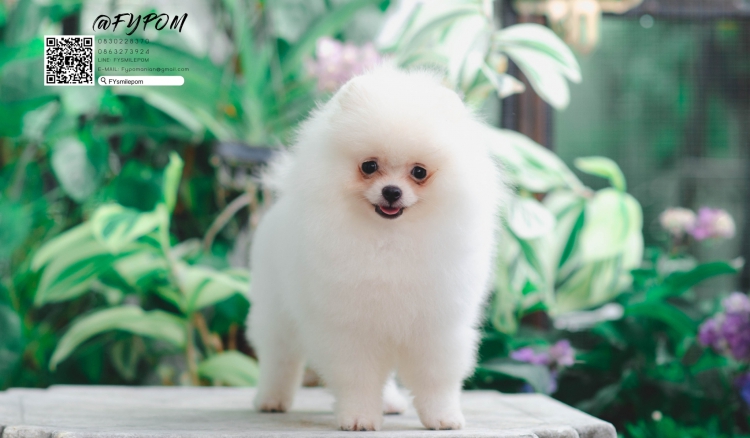 FYPOM KENNEL ขายน้อง Fy's la coppa เพศผู้ สีขาว หน้าตาน่ารัก โครงสร้างดี ขนแน่น 2 ชั้น สุขภาพดี