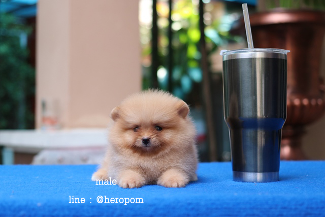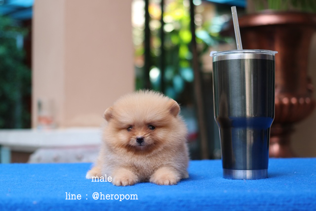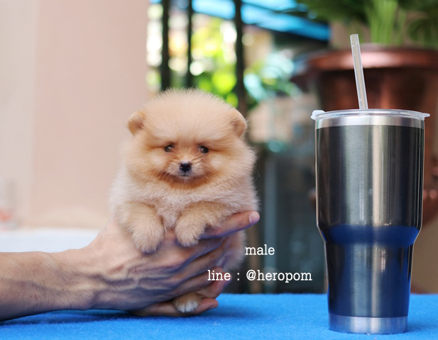 ปอมหน้าหมี เพศผู้ สีส้มอ่อน 1x,xxx เกรดเลี้ยงเล่น รับประกันสุขภาพ line : @heropom