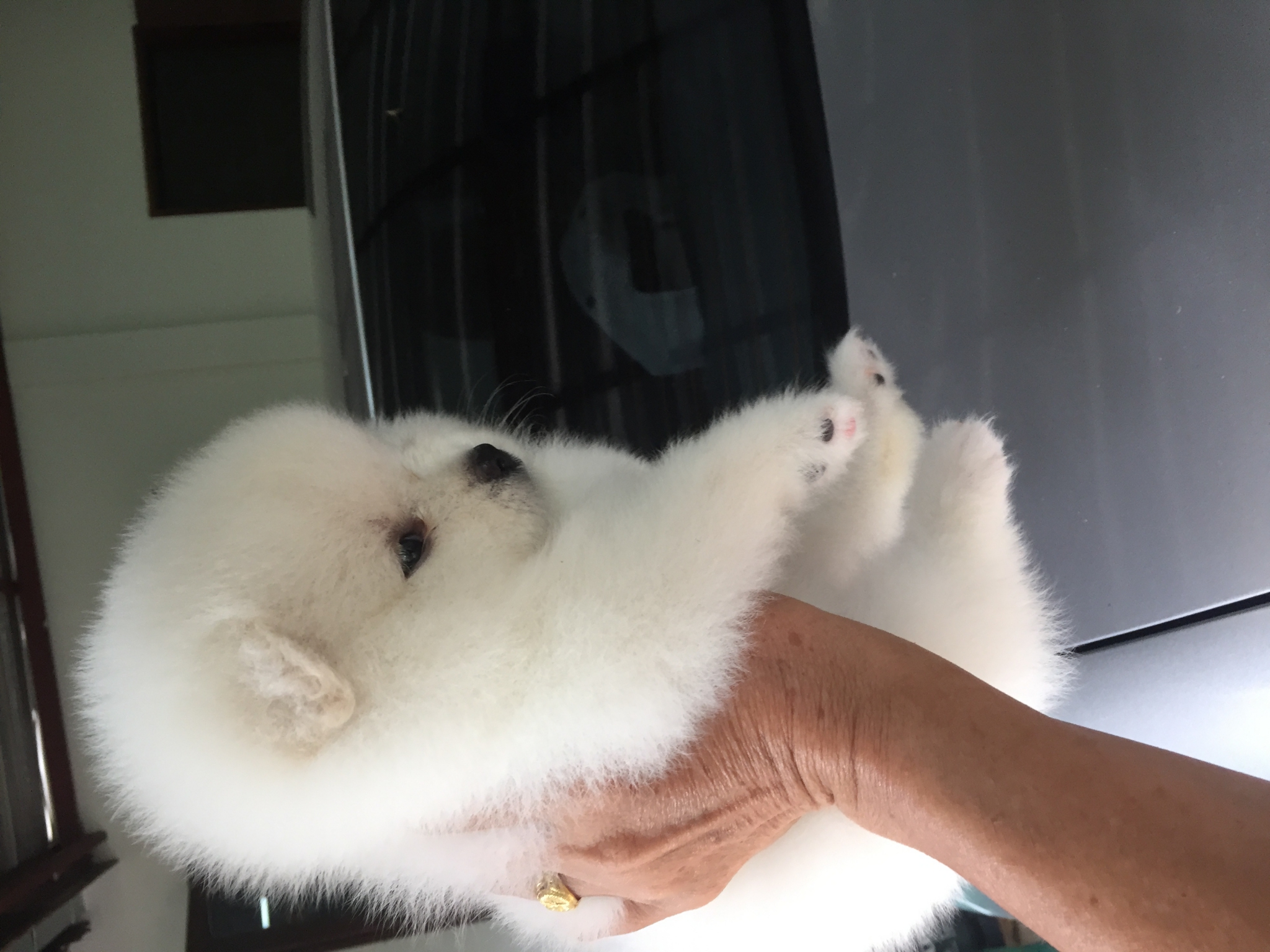 ปอมเพศผู้ สีขาวจั๊วะ ขนแน่น สวย น่ารัก สนใจทักมาที่ id line dang2288 น้องหมาอยู่เชียงใหม่ ต่างจังหวัดส่งเครื่องค่ะ