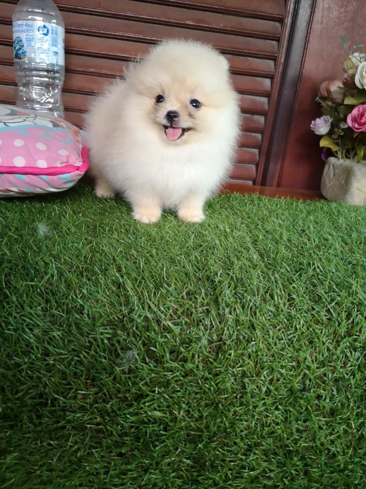 ปอมเพศผู้ สีขาวครีม ขนแน่น ฟอร์มใบเพ็ด น่ารักแข็งแรง สวย พร้อมถ่ายพยาธิและฉีดวัคซีนตามกำหนด
