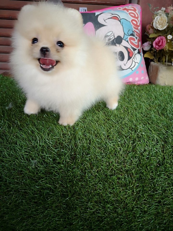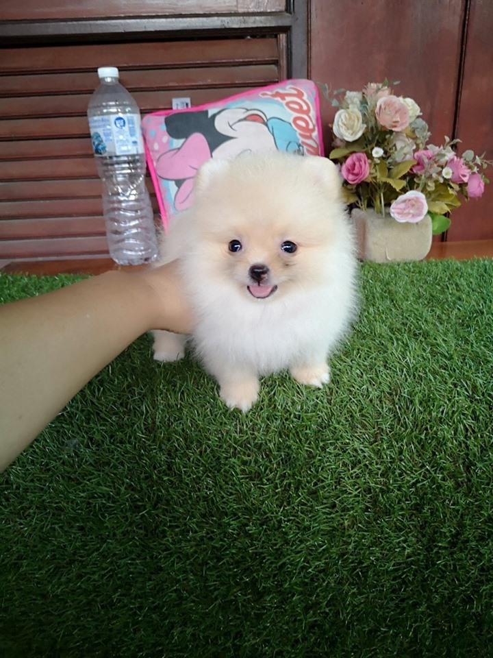 ปอมเพศผู้ สีขาวครีม ขนแน่น ฟอร์มใบเพ็ด น่ารักแข็งแรง 6500บาท