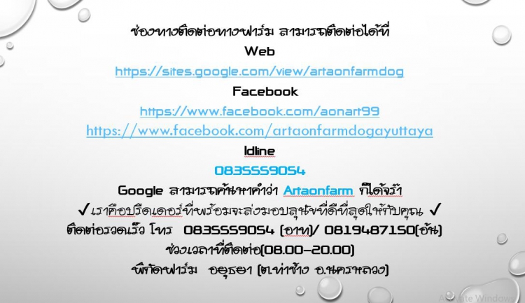 WEฺB ของทางฟาร์ม https://sites.google.com/view/artaonfarmdog/หนาแรก