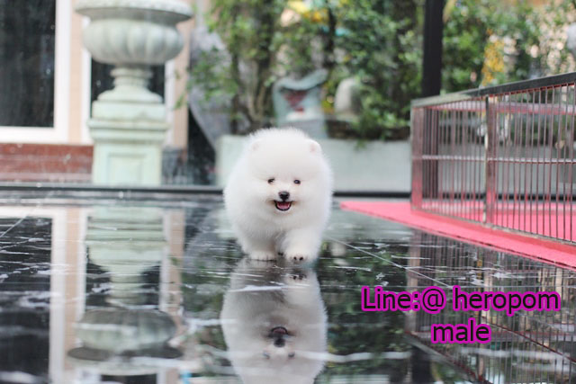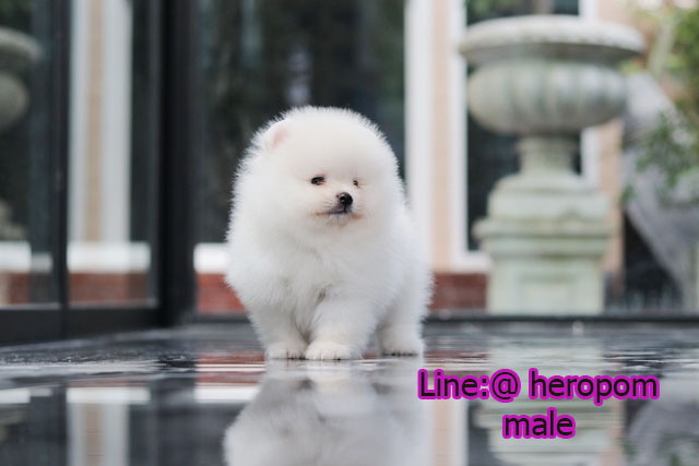 ขายปอมหน้าหมีแท้ อายุ 2 เดือนเพศผู้ สีขาว ตัวเล็ก น่ารัก ขาใหญ่ ตากลม ขาสั้น Acailable. Please