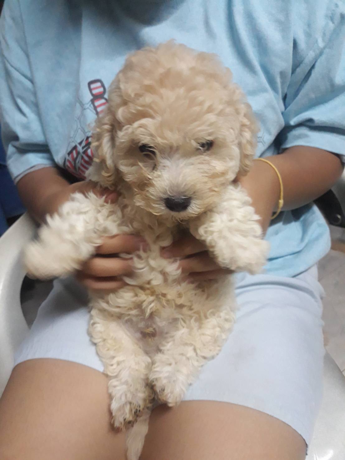 ลูกสุนัขพุดเดิ้ลทอย ชื่อน้องไข่ต้ม เพศผู้ สีไข่ไก่อ่อน อายุ 2 เดือน 30 วัน ร่าเริงมากๆ น่ารัก ขี้อ้อน เเข็งเเรง หน้าหมี ขนนุ่มหนา กินอาหารได้เเล้ว (เป็นลูกสุนัขที่บ้านเลี้ยงเองค่ะ) พร้อมย้ายบ้าน (น้องมีขนาดตัวเล็กมากค่ะ**)