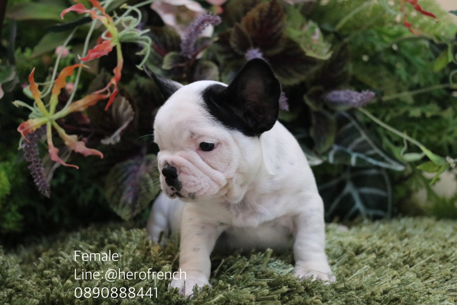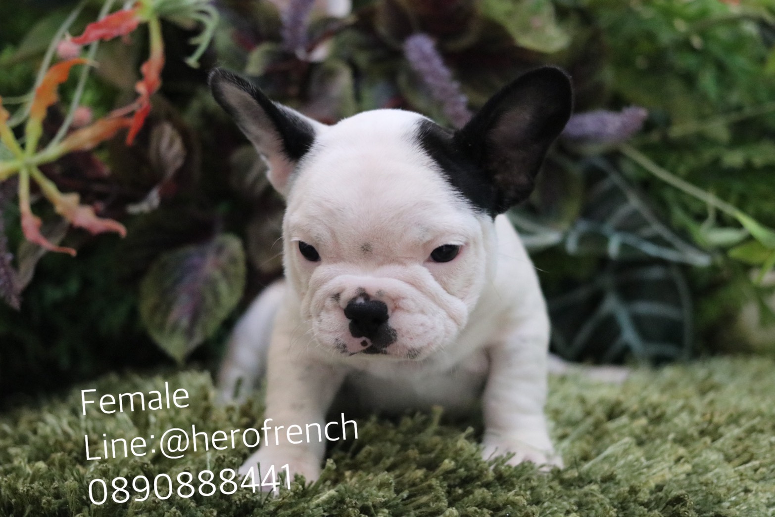 เฟรนช์บลูด็อก เพศเมียสีขาวดำ ตัวอ้วนกลม สุขภาพแข็งแรง การันตีสุขภาพ 30 วัน สอบถาม line: @herofrench