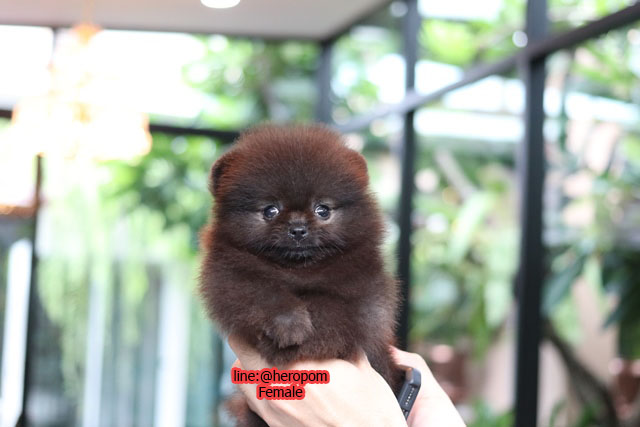 ขายปอมหน้าหมี อายุ 2 เดือนเพศเมีย สีชอคโกแลต ตัวเล็ก น่ารัก ขาใหญ่ ตากลม ขาสั้น Acailable. Please