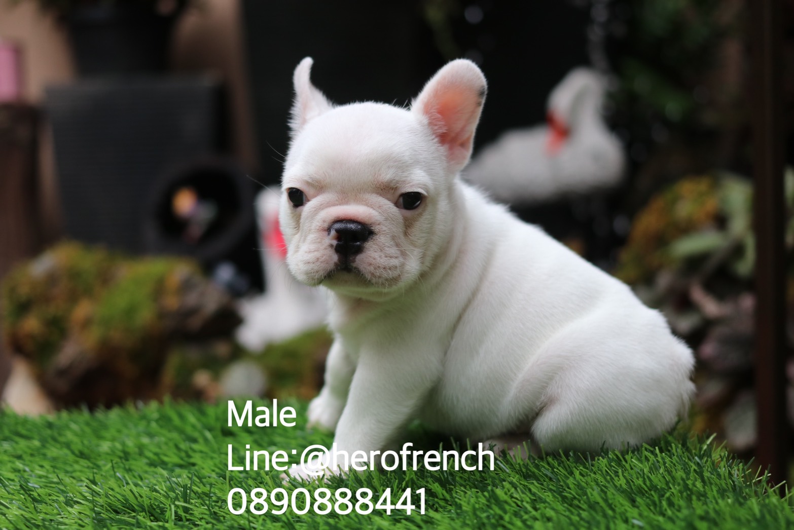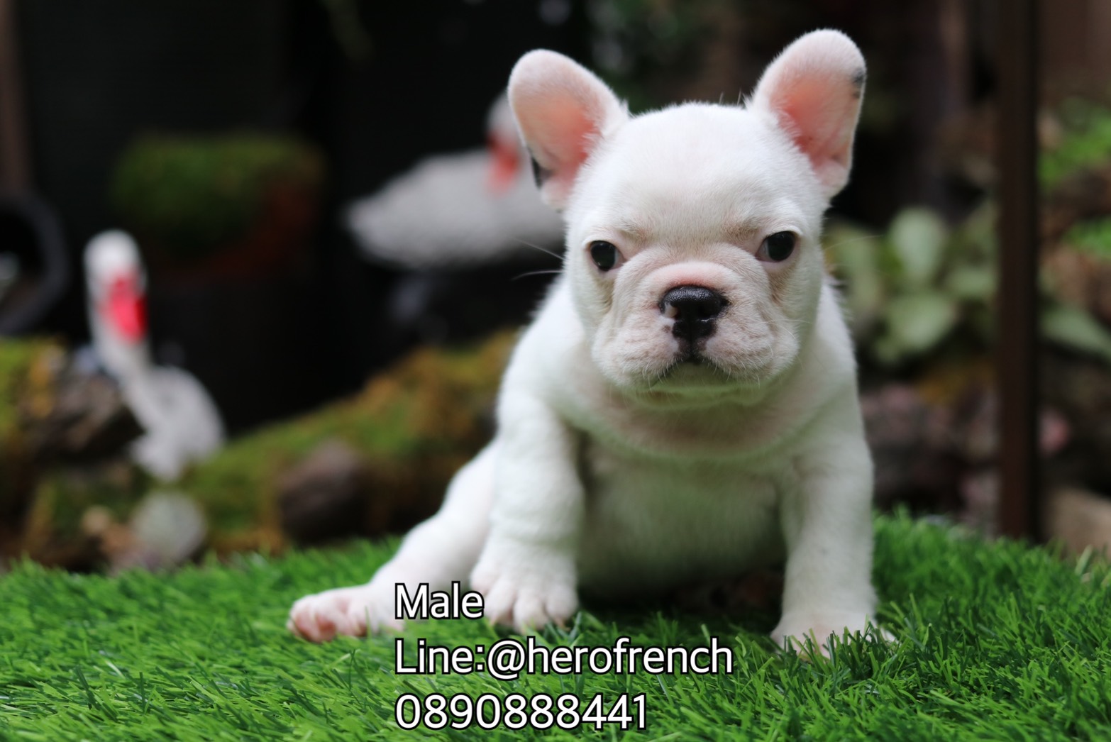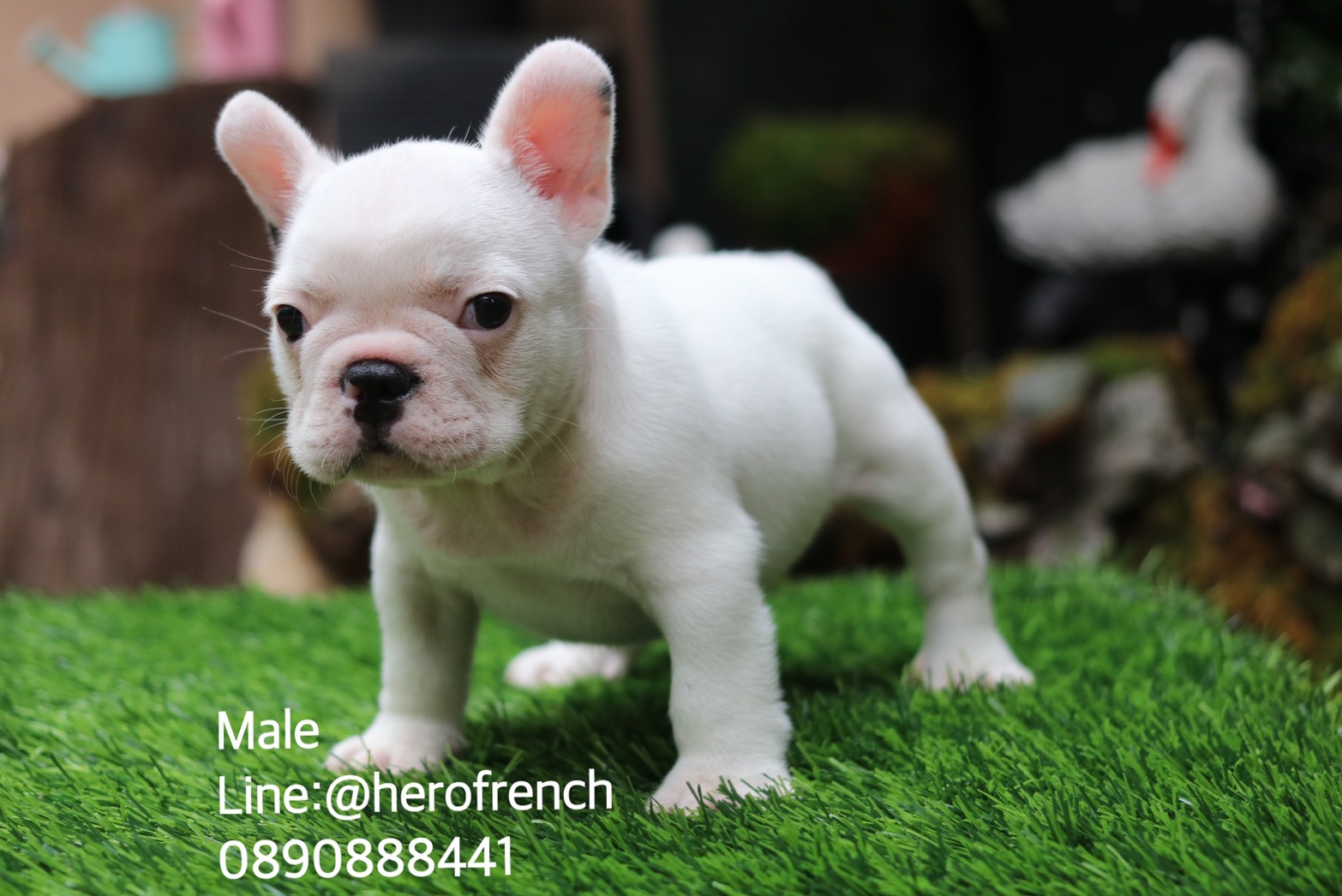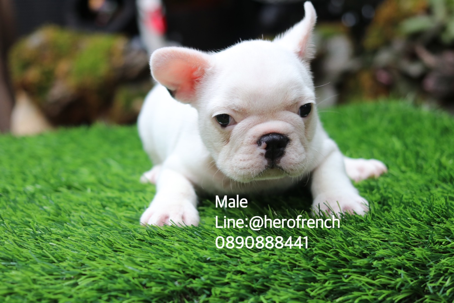 เฟรนช์บลูด็อก เพศผู้ สีขาวน่ารัก สุขภาพแข็งแรง การันตีสุขภาพ 30 วัน สอบถาม line: @herofrench