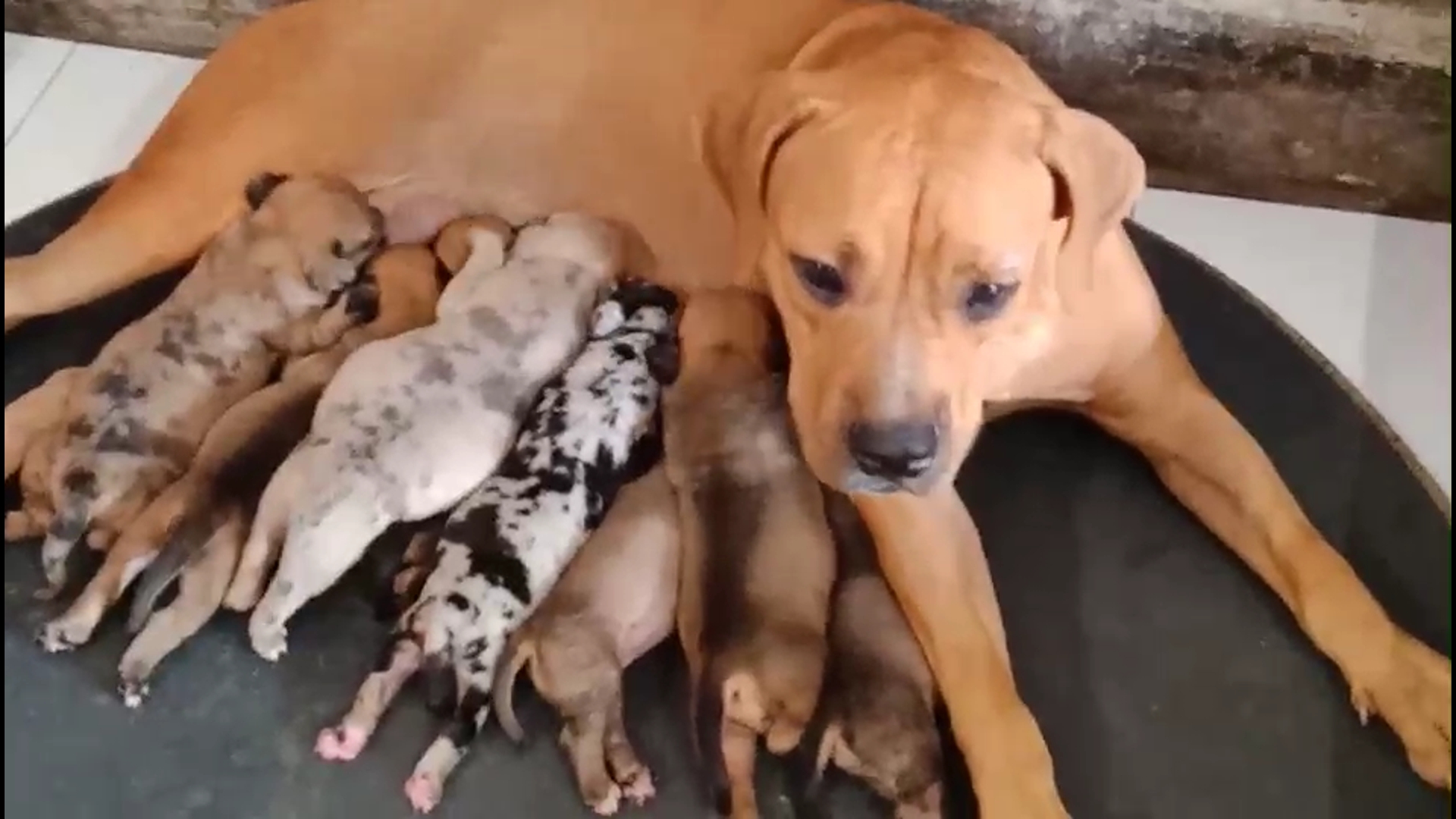 พิทบูลบัฟด็อก ในคลิปอายุ 16 วัน ลูกหมาลืมตาหมดแล้วครับ ตัวที่ไม่ใช่สีเมอร์ราคาเบาๆเลยครับ โตมาสามารถให้ลูกสีเมอร์ได้เหมือนกันครับ ชุดนี้หน้าสวยสูงใหญ่ครับ