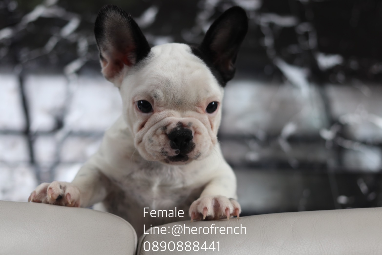 เฟรนช์บลูด็อก เพศเมีย สีขาวดำ น่ารัก สุขภาพแข็งแรง การันตีสุขภาพ 30 วัน สอบถาม line: @herofrench