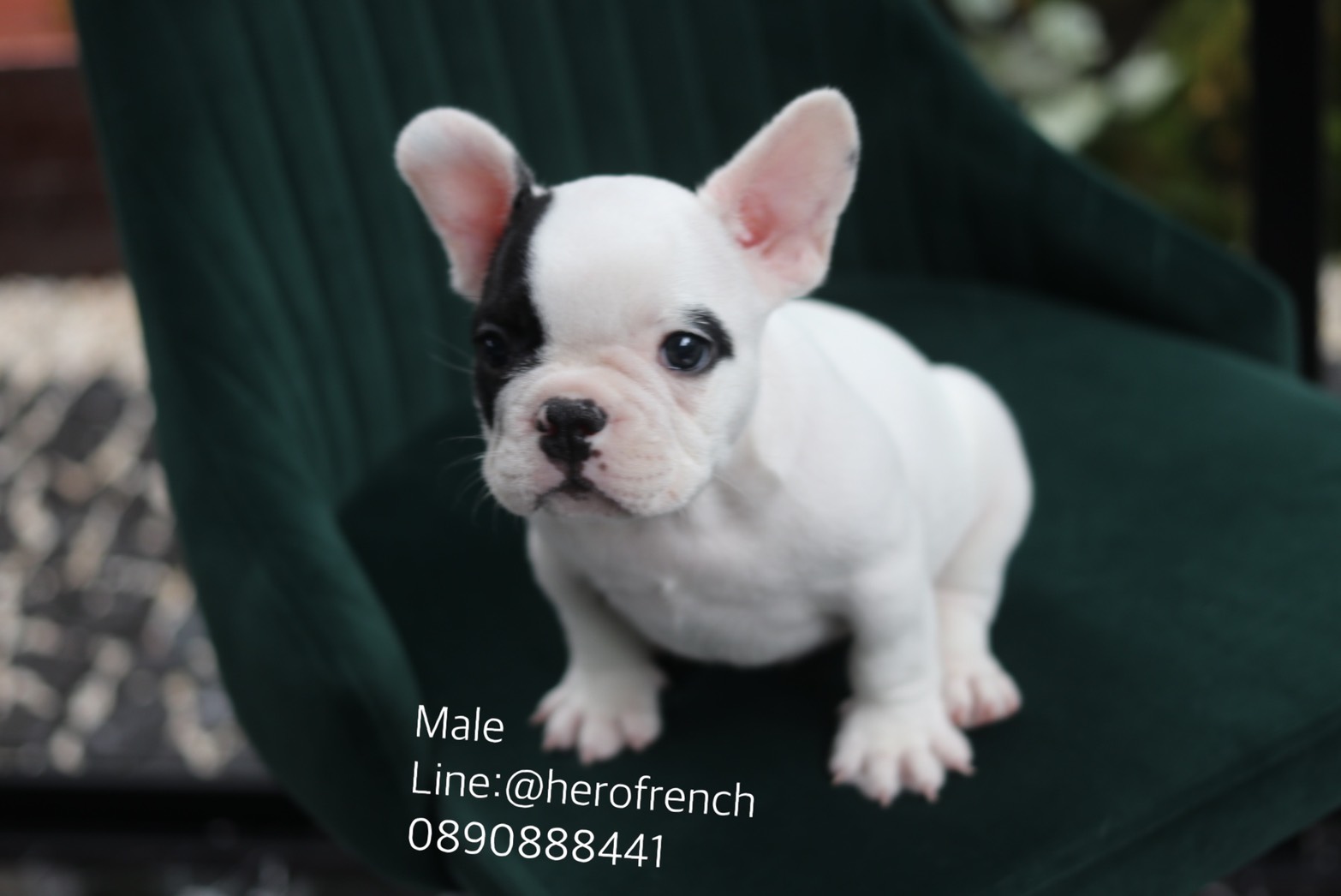เฟรนช์บลูด็อก เพศผู้ สีขาวดำ น่ารัก สุขภาพแข็งแรง การันตีสุขภาพ 30 วัน สอบถาม line: @herofrench