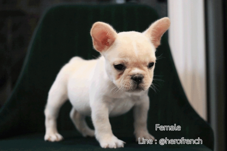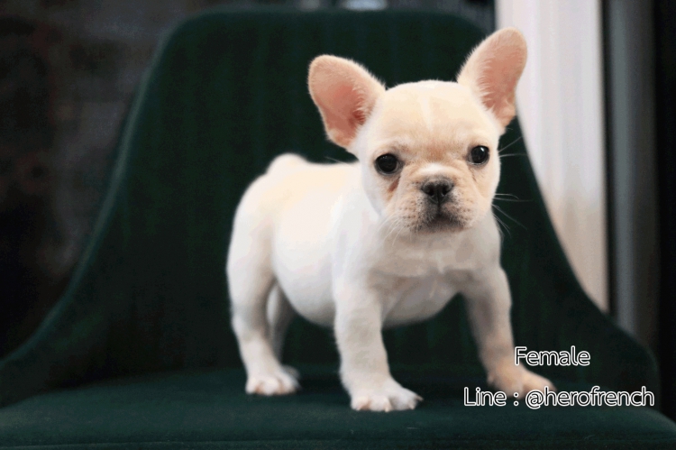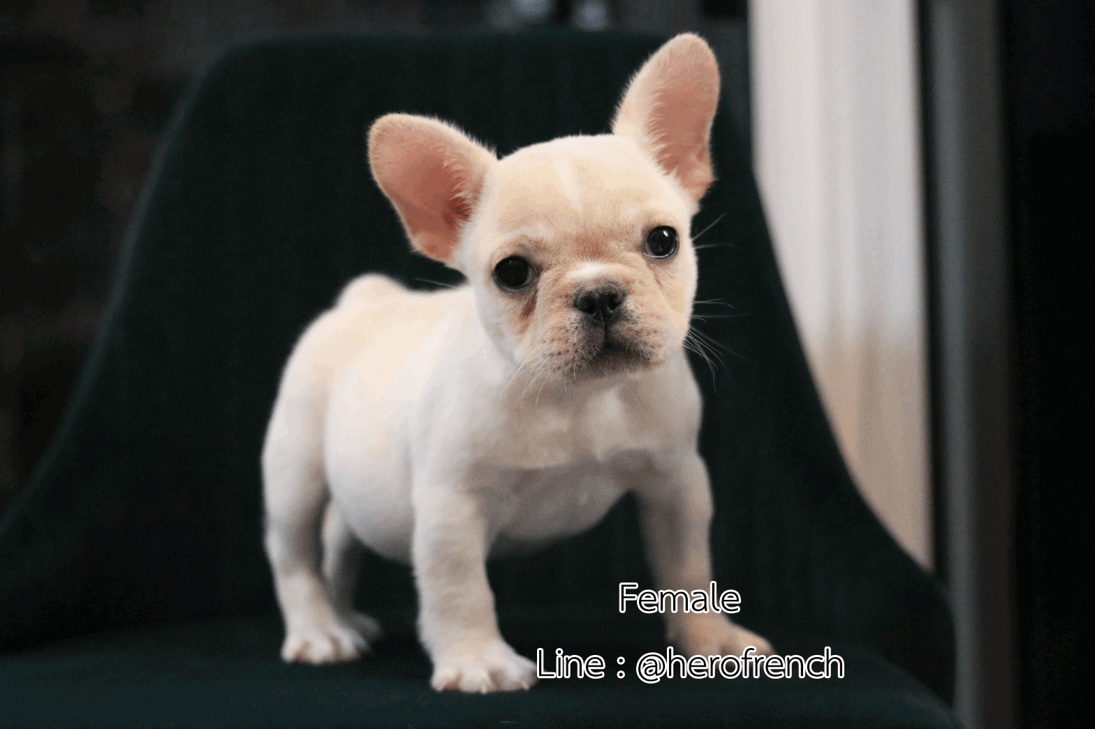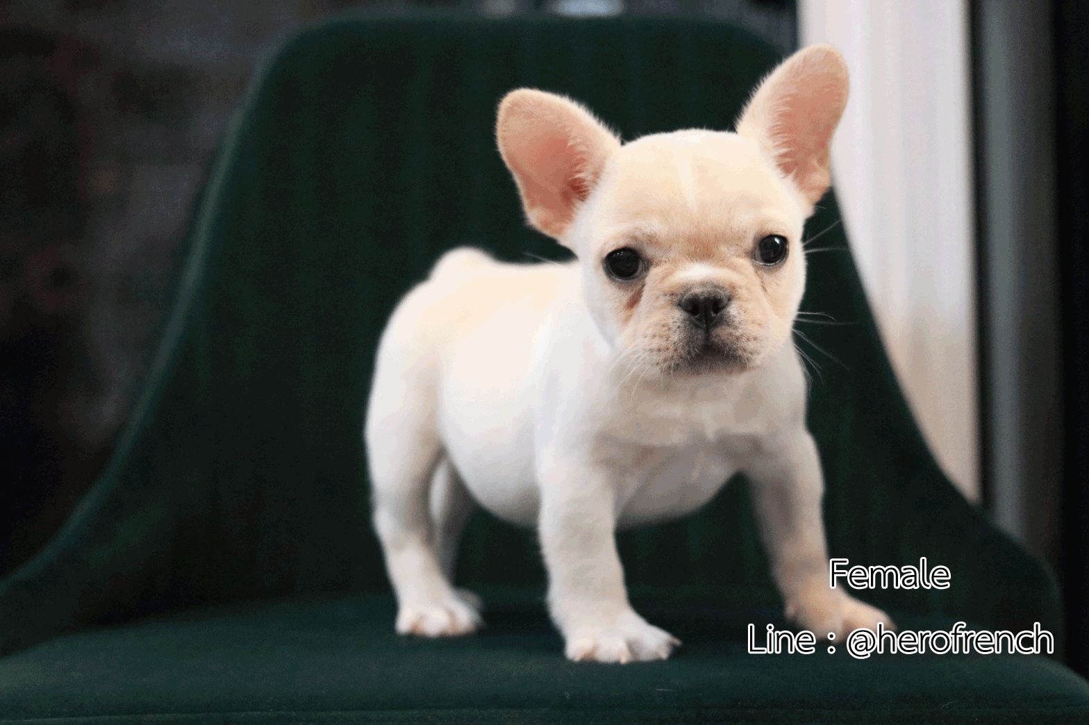 เฟรนช์บลูด็อก เพศเมีย สีครีม น่ารัก สุขภาพแข็งแรง การันตีสุขภาพ 30 วัน สอบถาม line: @herofrench