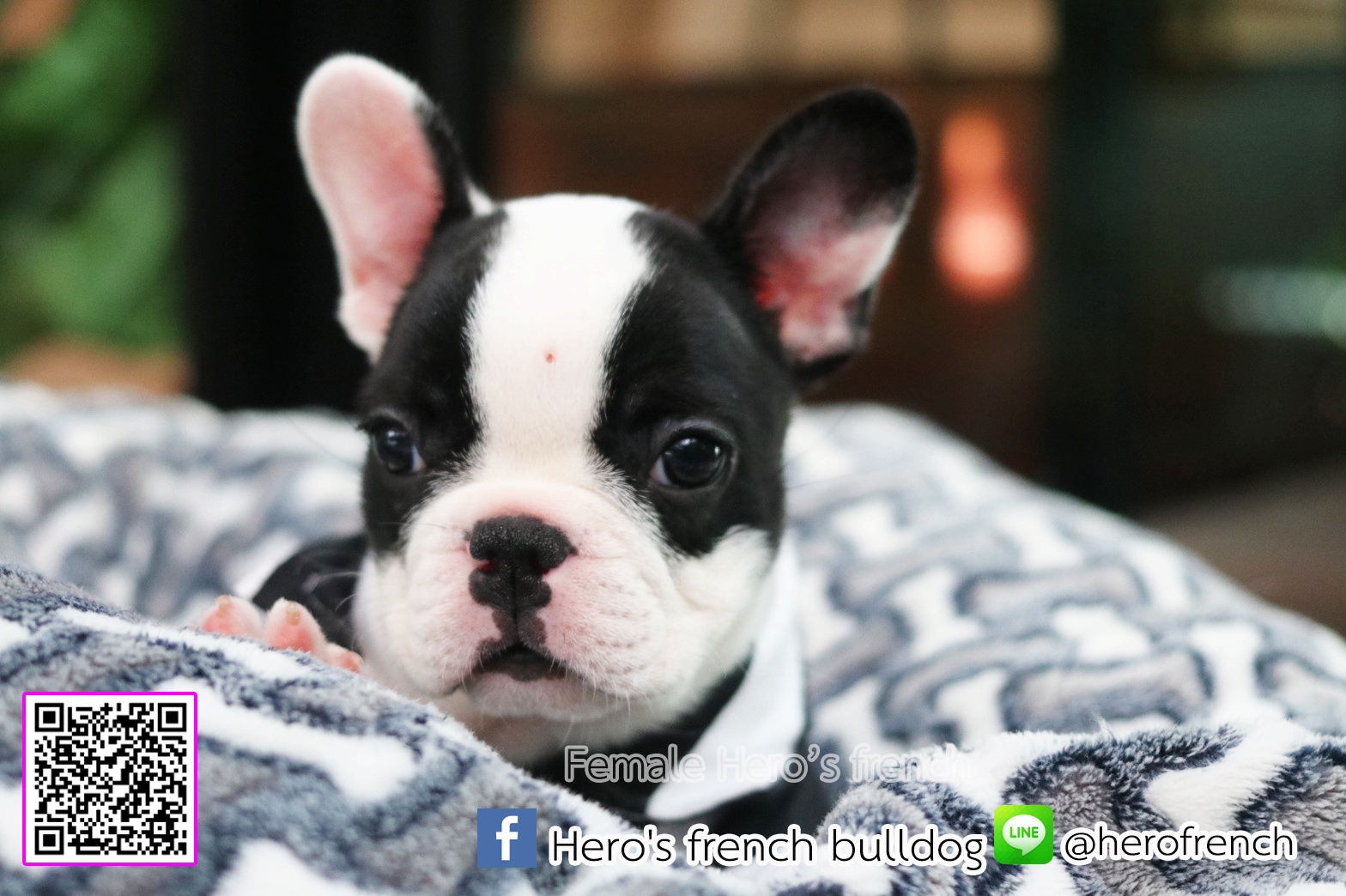 เฟรนช์บลูด็อก เพศเมีย สีขาวดำ น่ารัก สุขภาพแข็งแรง การันตีสุขภาพ 30 วัน สอบถาม line: @herofrench
