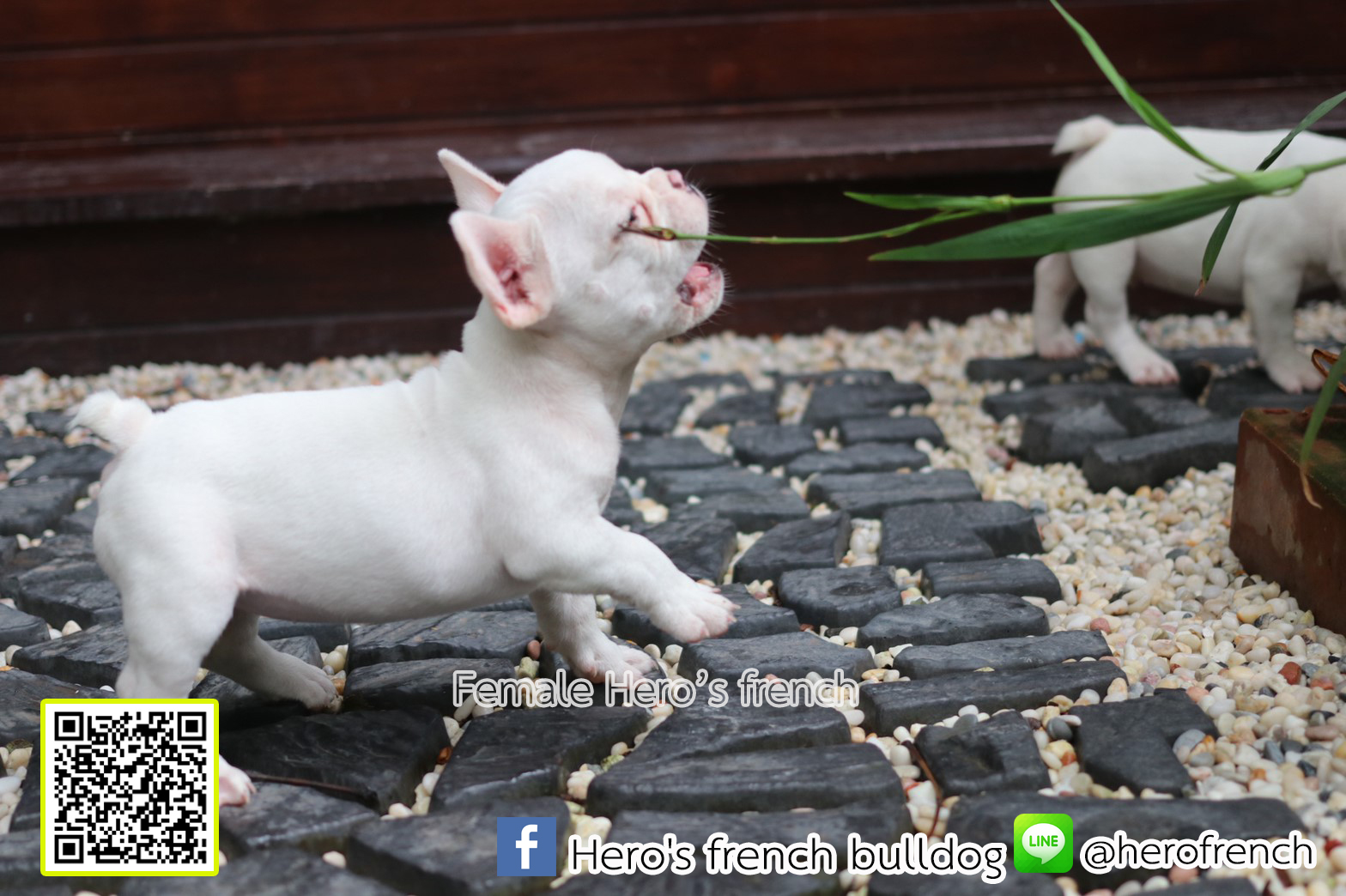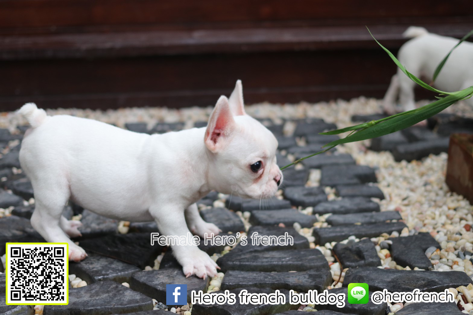 เฟรนช์บลูด็อก เพศเมีย สีขาว น่ารัก สุขภาพแข็งแรง การันตีสุขภาพ 30 วัน สอบถาม line: @herofrench