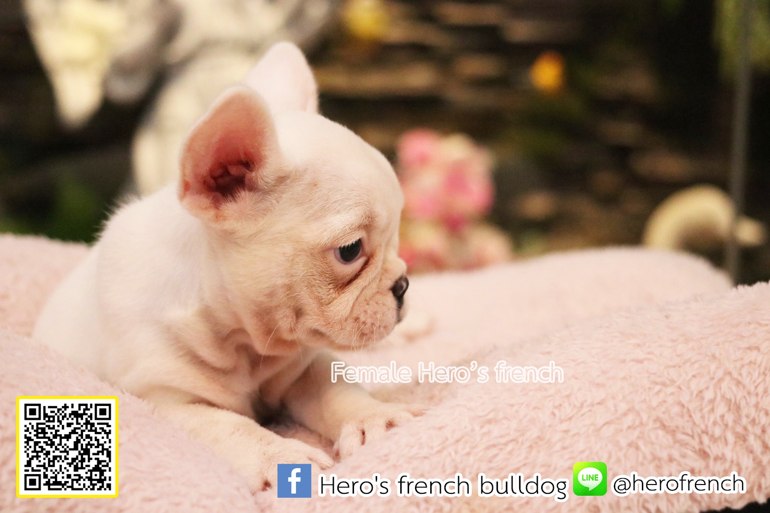 เฟรนช์บลูด็อก เพศเมีย สีขาว น่ารัก สุขภาพแข็งแรง การันตีสุขภาพ 30 วัน สอบถาม line: @herofrench