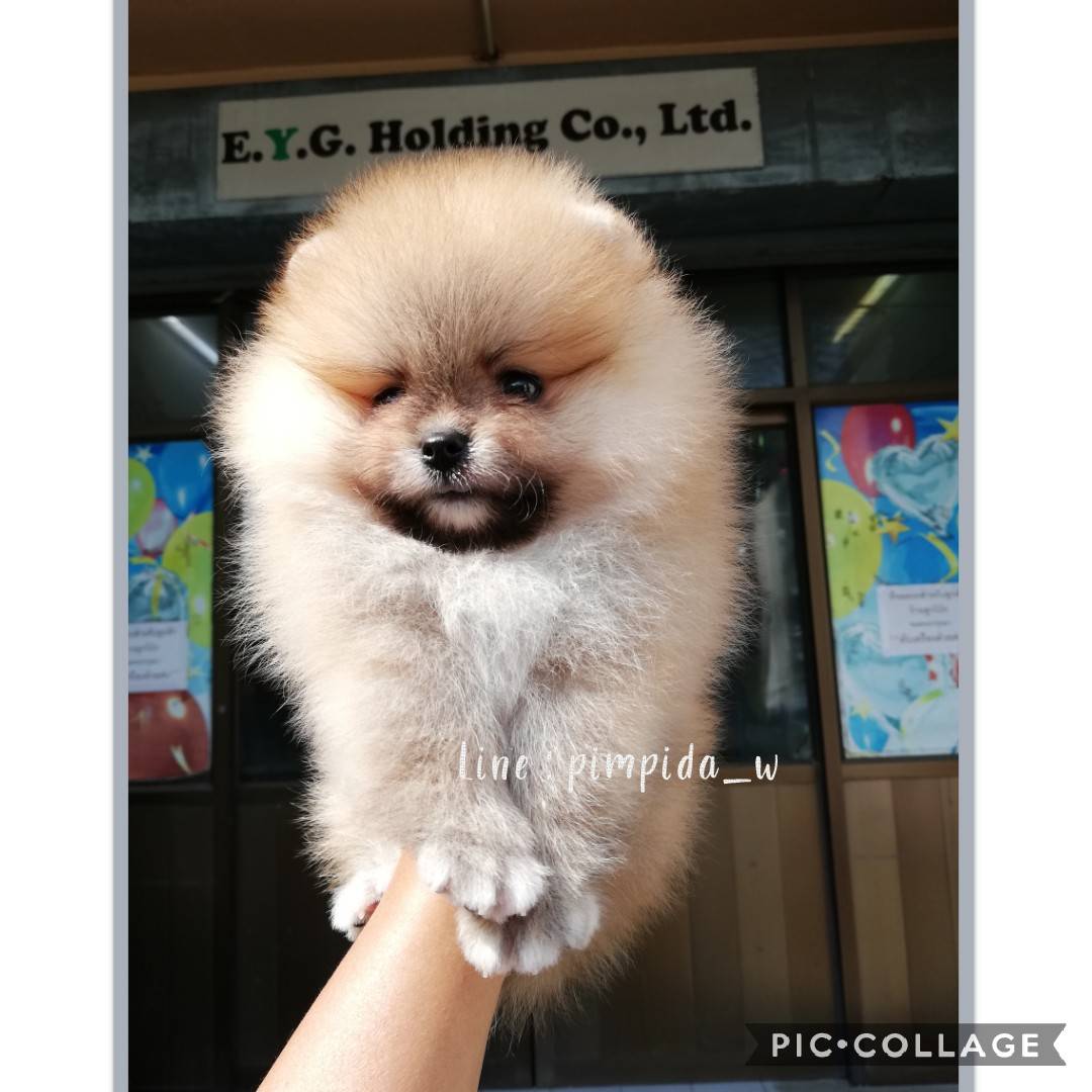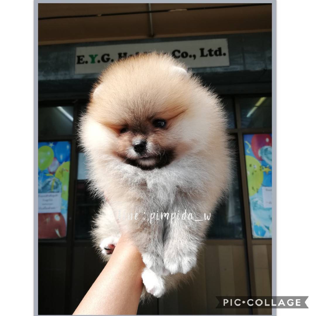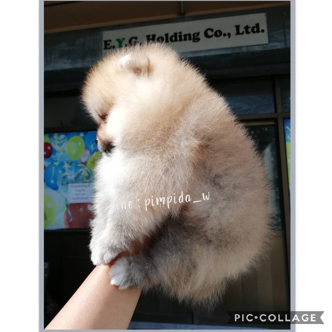 น้องปอมเพศผู้ หน้าหมี สีส้ม สายเลือดดีมีใบเพ็ด เกรดพ่อพันธุ์