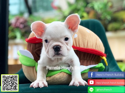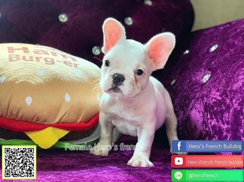 เฟรนช์บลูด็อก เพศเมีย สีขาว น่ารัก สุขภาพแข็งแรง การันตีสุขภาพ 30 วัน สอบถาม line: @herofrench