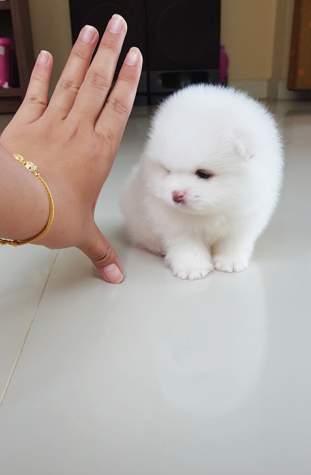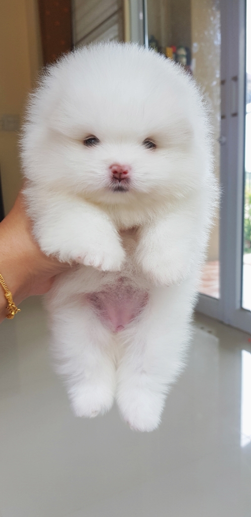 ปอมเมอเรเนี่ยนสีขาวสำลีเพศเมีย ขาวเว่อร์ เตี้ยสั้นขนแน่น เพ็ดเต็มใบ สนใจสอบถามเพิ่มเติมที่ 0839521646 หรือไลน์ pugja หรือ @pugja และดูประวัติการขายที่เฟสสำรอง