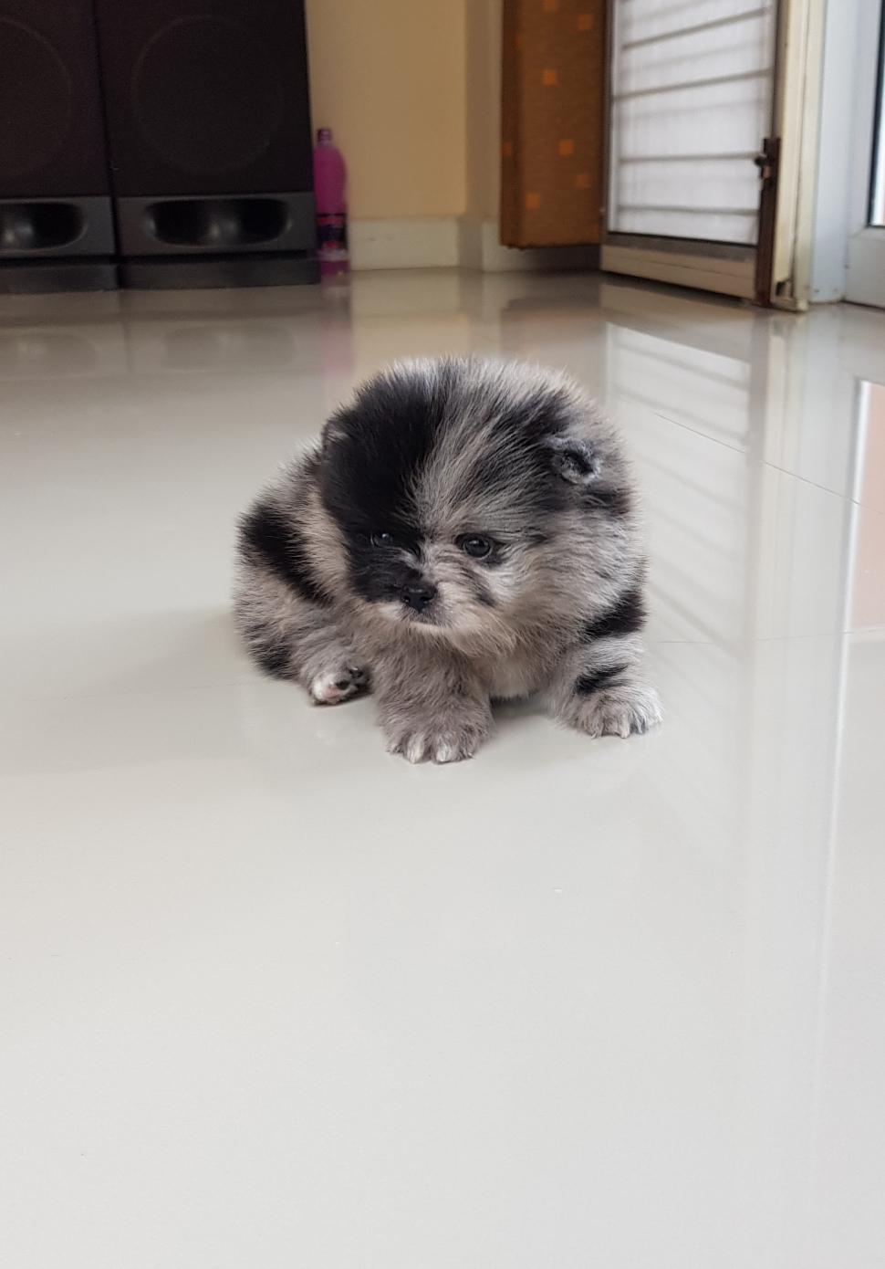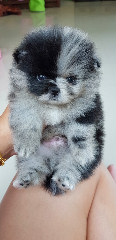 ปอมเมอเรเนี่ยนเพศผู้ สีเมิร์ล สวยๆ เพ็ดเต็มใบ