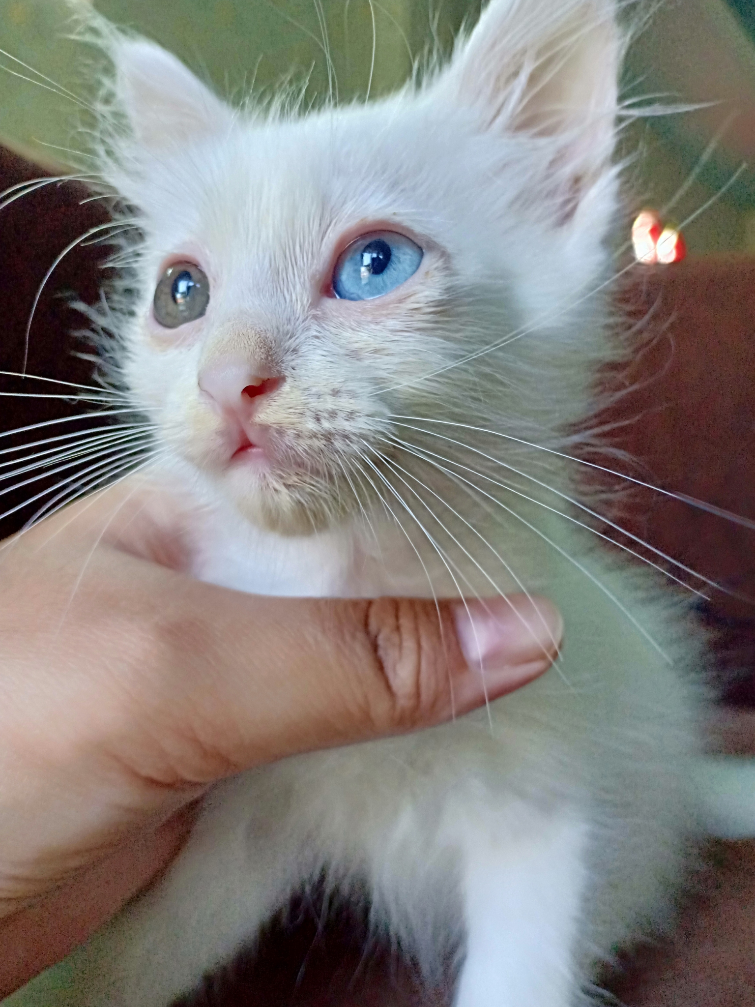 ลูก แมว ขาวมณีผสมเปอร์เซีย ตาสองสี เพศหญิง ขี้อ้อน น่ารักมากๆ อายุ 55 วัน น้องแมวอยู่สุพรรณบุรี สินสอด 3900 จ้า โทร 0990231969 เฟสบุ๊ค สุจิตรา รกแมวมหาลาภ