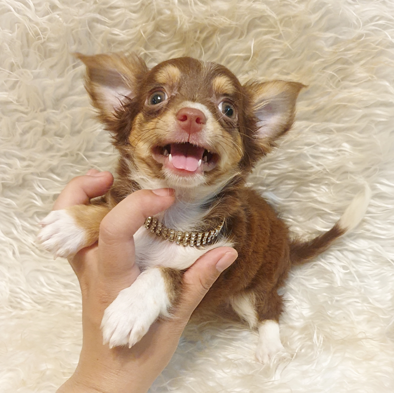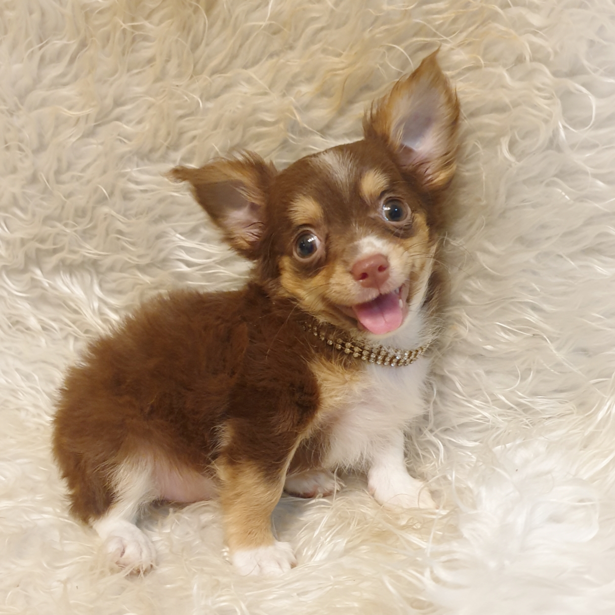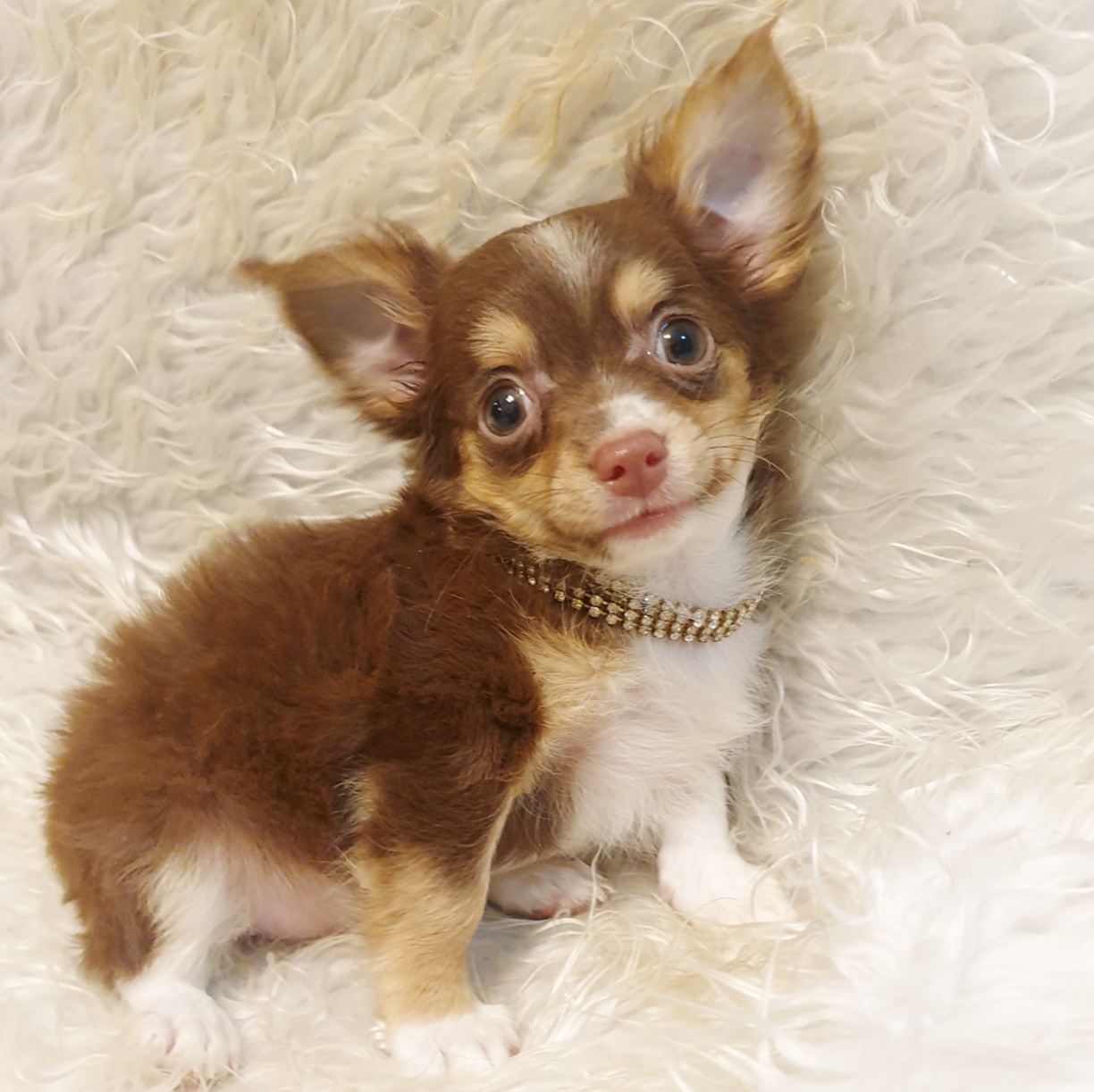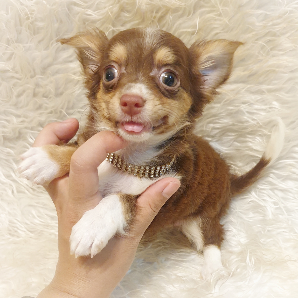 LITTLE DOG'S FARM : ย้ายบ้านแล้ว หนุ่มน้อยชิวาวาขนยาว สีแฟนซีขาว-ชอคโกแลต น่ารักๆจ้า
