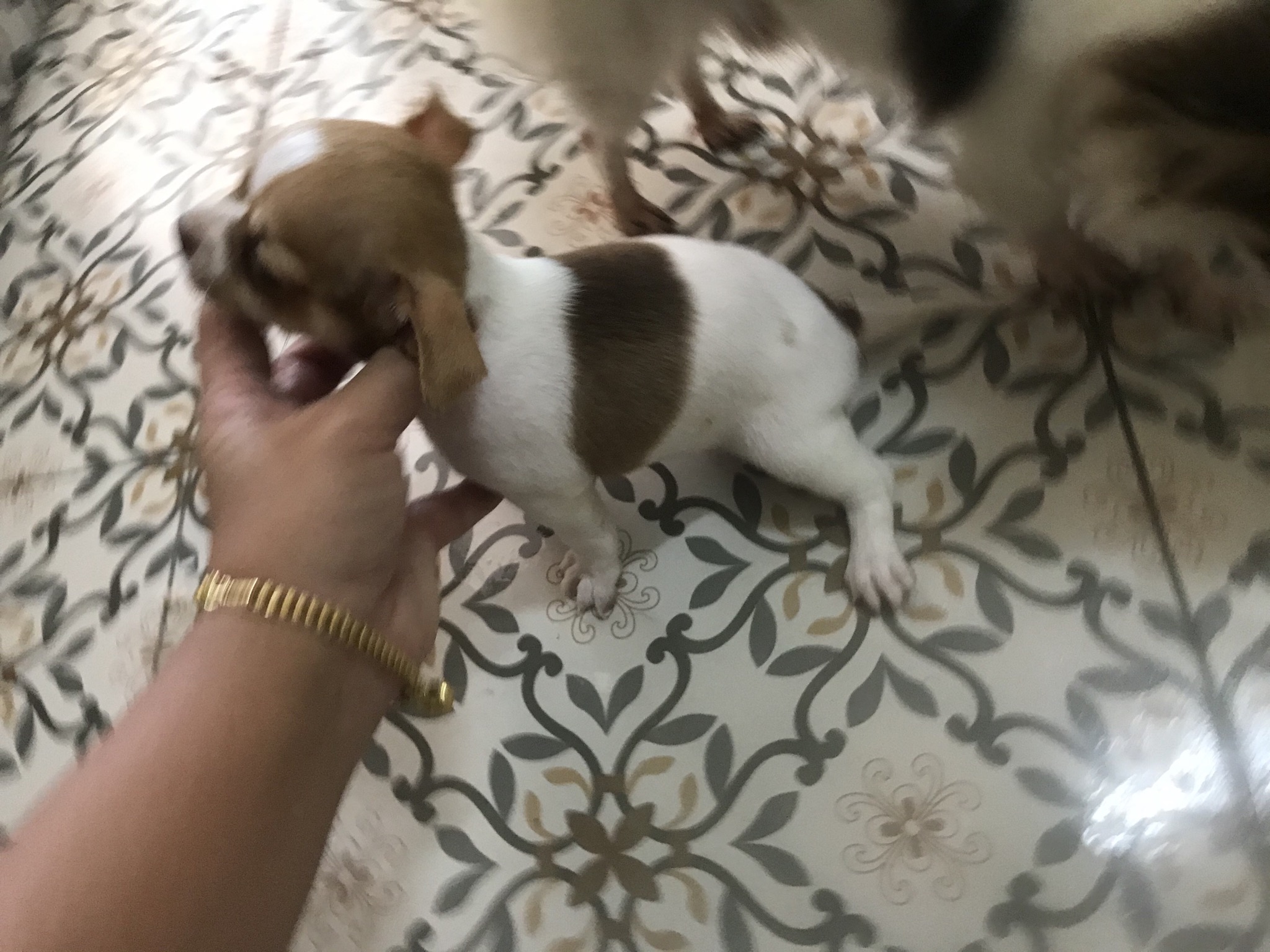 แม่เป็น ชิวาว่า ขนสั้น สีขาว น้ำตาล