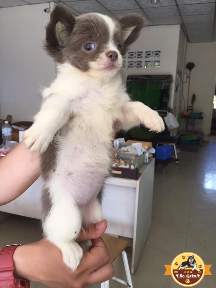 ชิวาวาเด็กหญิง สีขาวบลู ขนยาว อย่างสวย พร้อมย้ายบ้านแล้วนะคะ