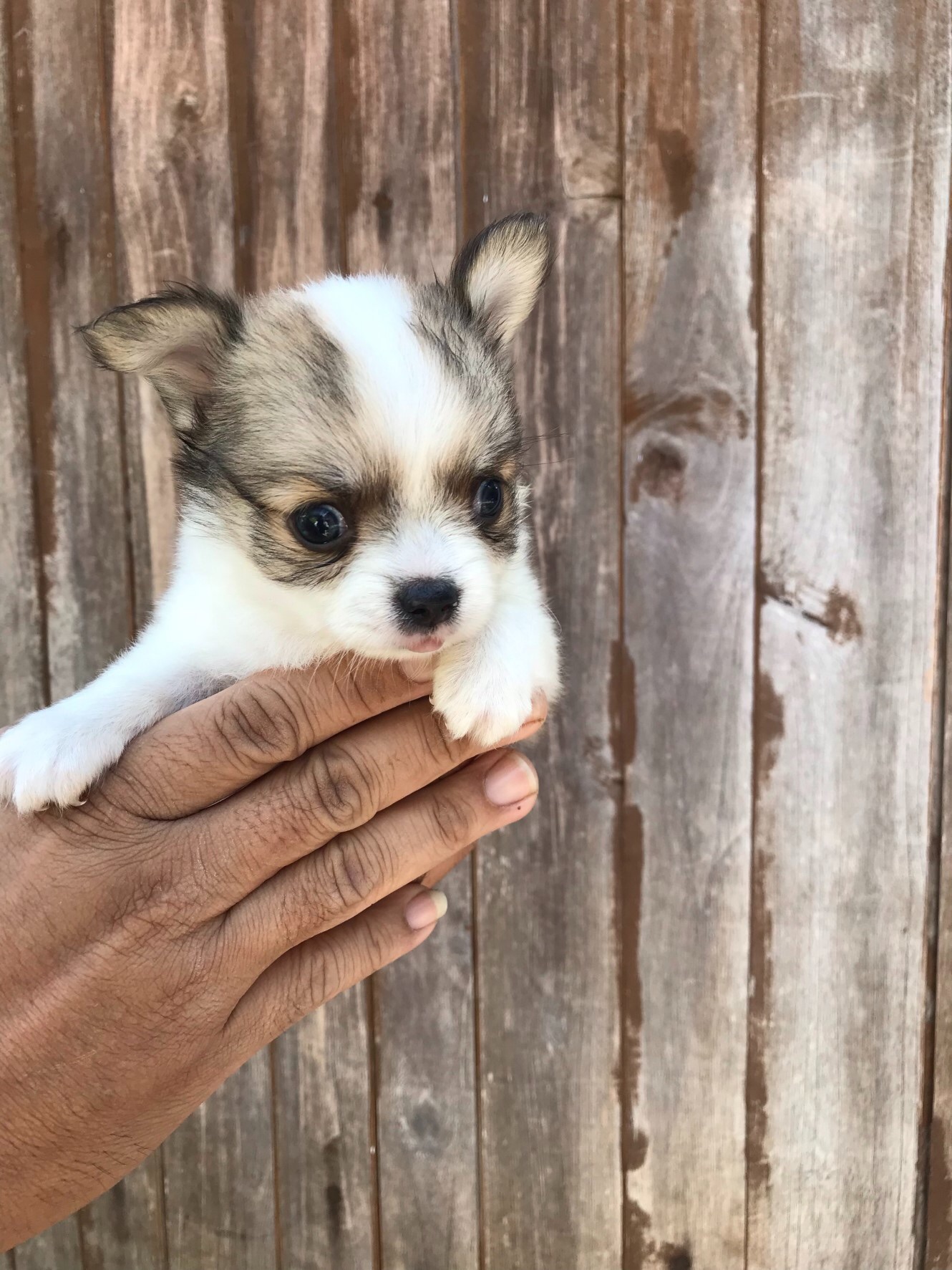 (จองแล้ว)ชิวาวา เพศเมีย น้องเอลซ่า สีขาว น้ำตาล มาร์คสวย ขนยาว สุขภาพแข็งแรง อายุ 2 เดือน วัคซีนและถ