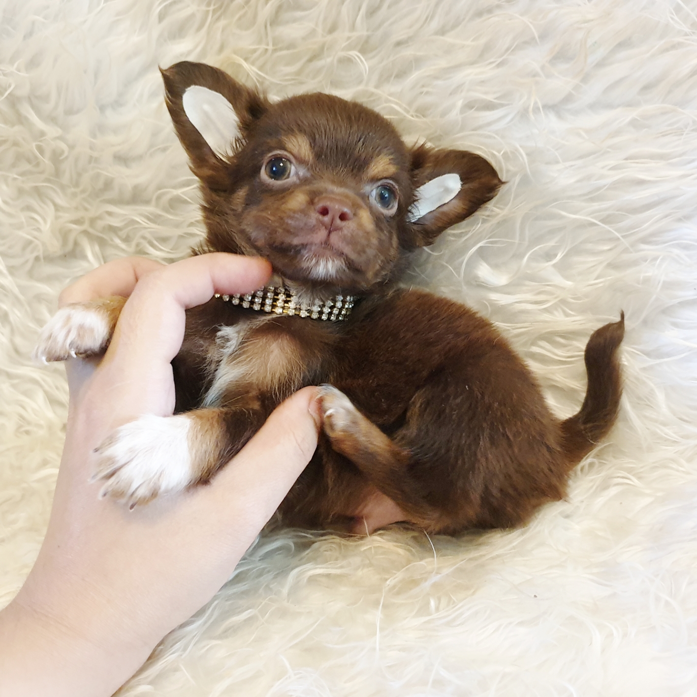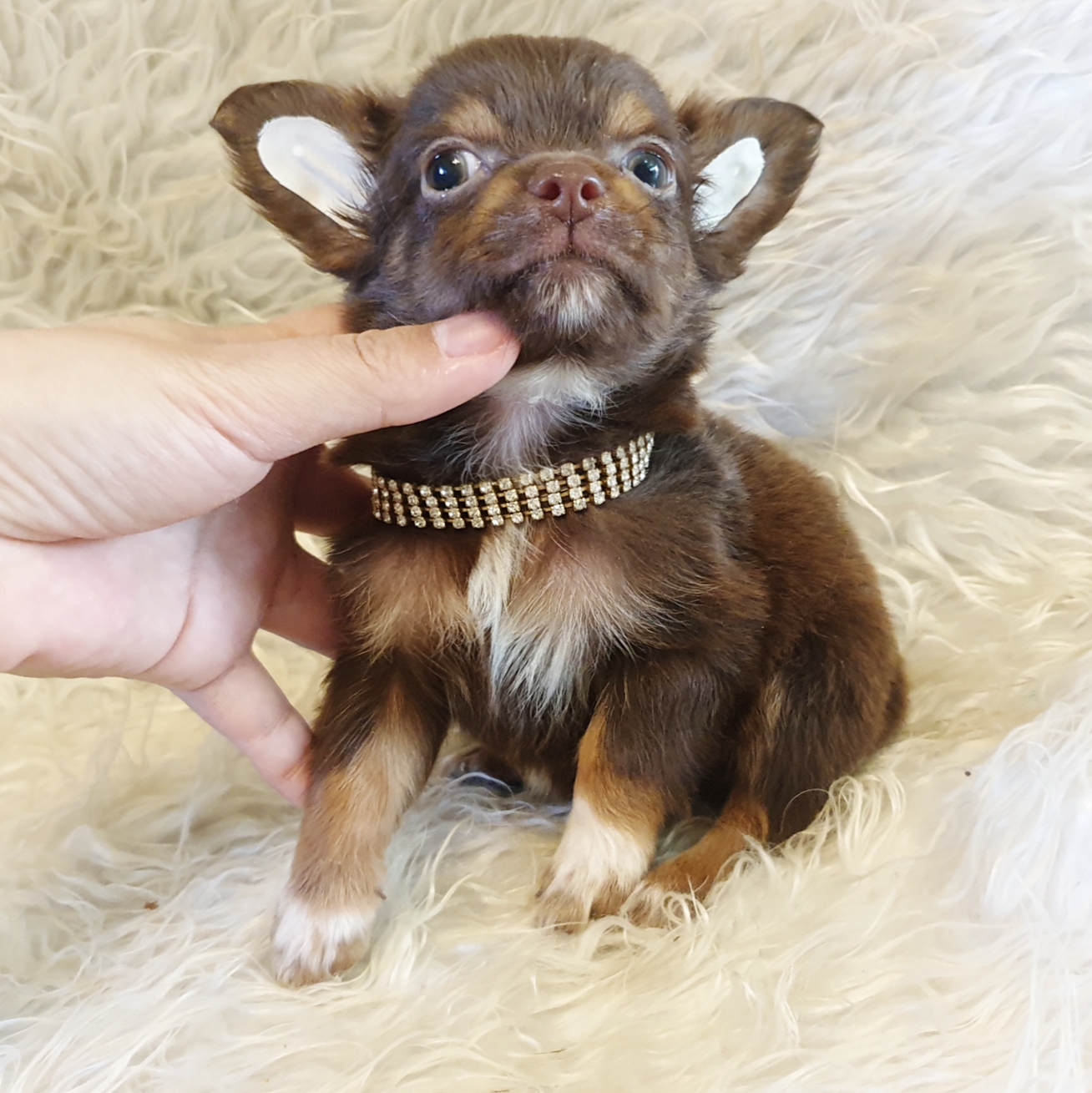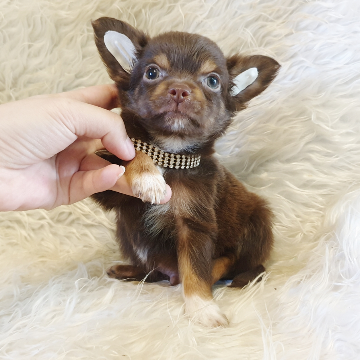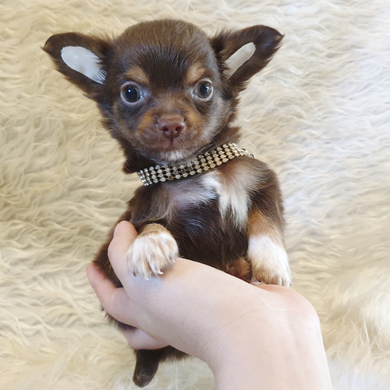 หนุ่มน้อยชิวาวาขนยาว สีช็อคโกแลตแอนด์แทน