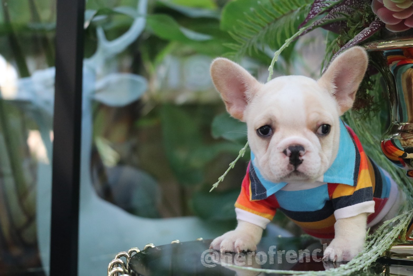 เฟรนช์บลูด็อก เพศผู้ สีครีม หน้าสั้น ใบหูสั้น ขี้เล่น น่ารัก ทรงสวย อายุ 2 ดือน สุขภาพแข็งแรง
