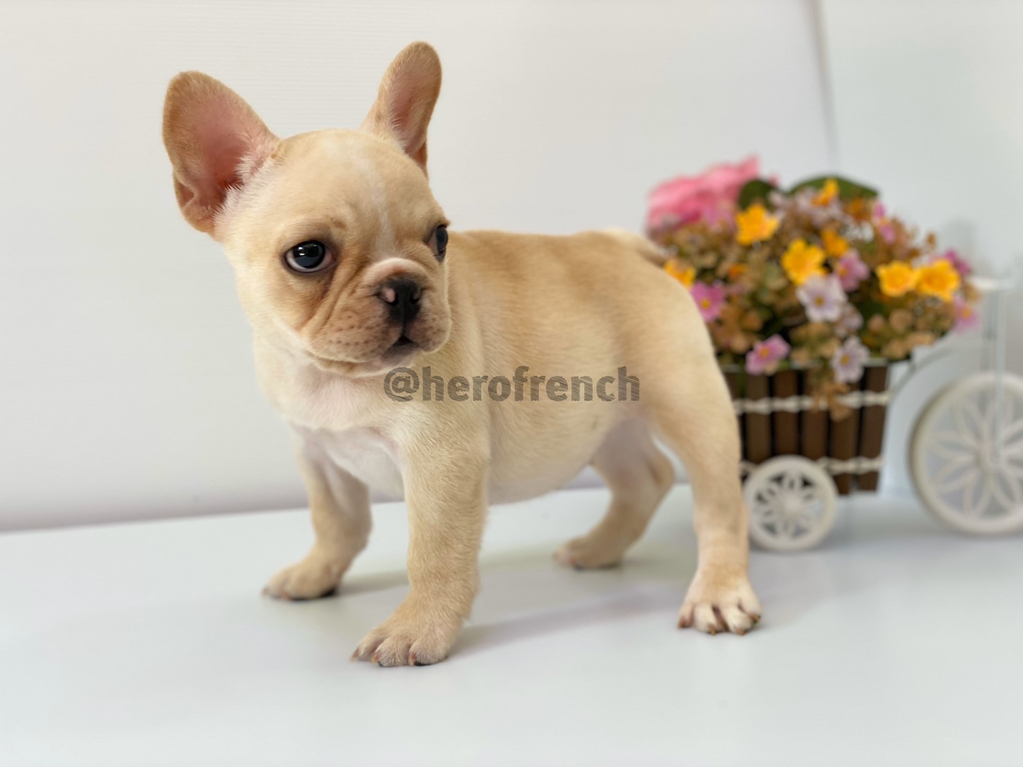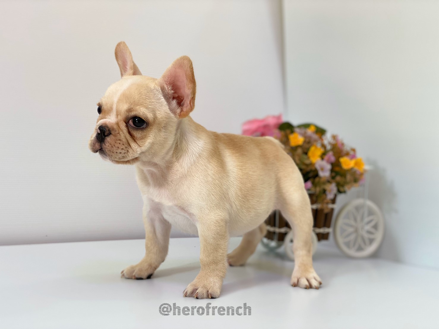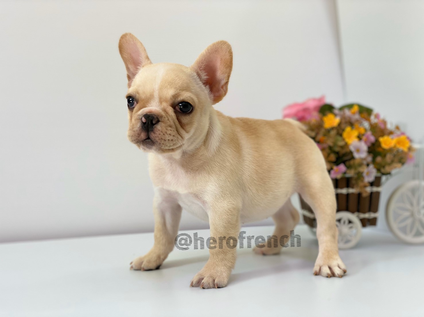 เฟรนช์บลูด็อก เพศเมียสีครีม หน้าสั้น ใบหูสั้น ขี้เล่น น่ารัก ทรงสวย อายุ 2 ดือน
