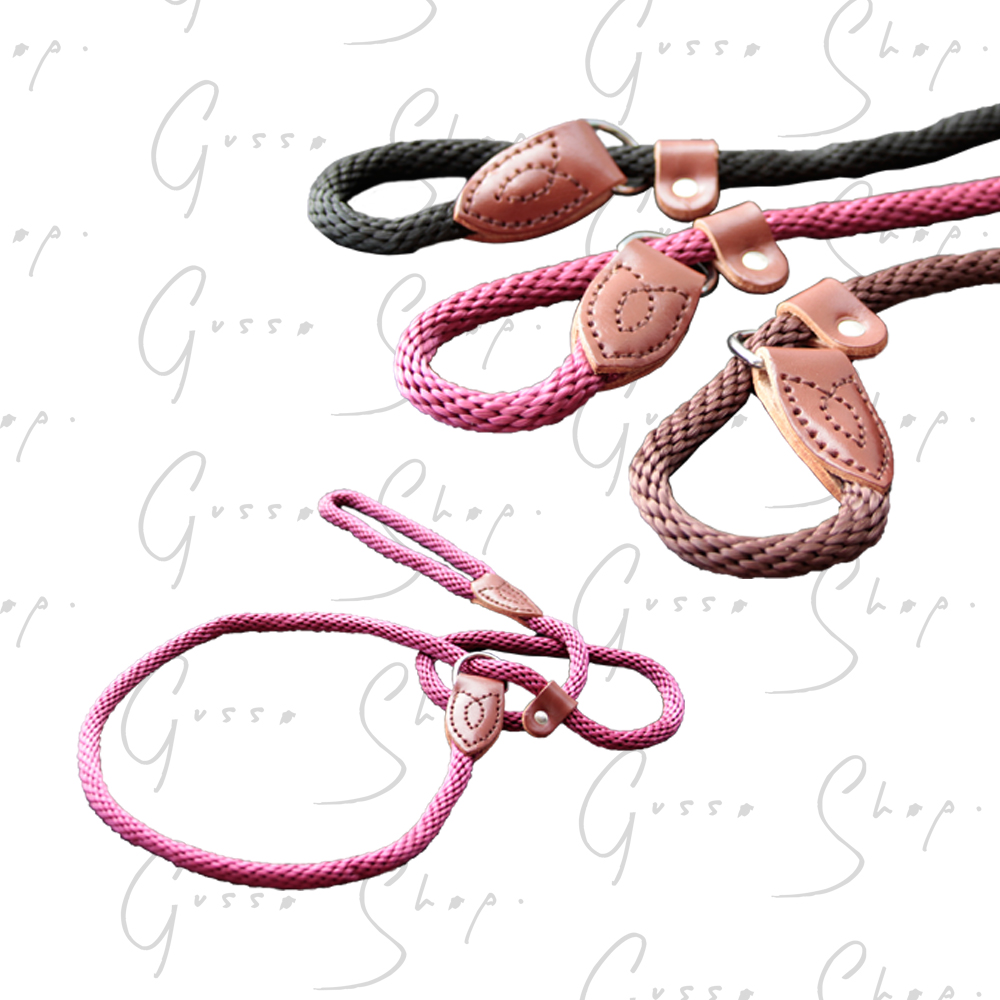 เป็นสายจูงแบบมีตัวคล้องคอมาให้ในตัว ปลายหัวรูดเย็บด้วยหนังแท้ สวยงาม