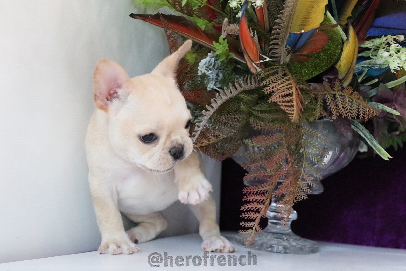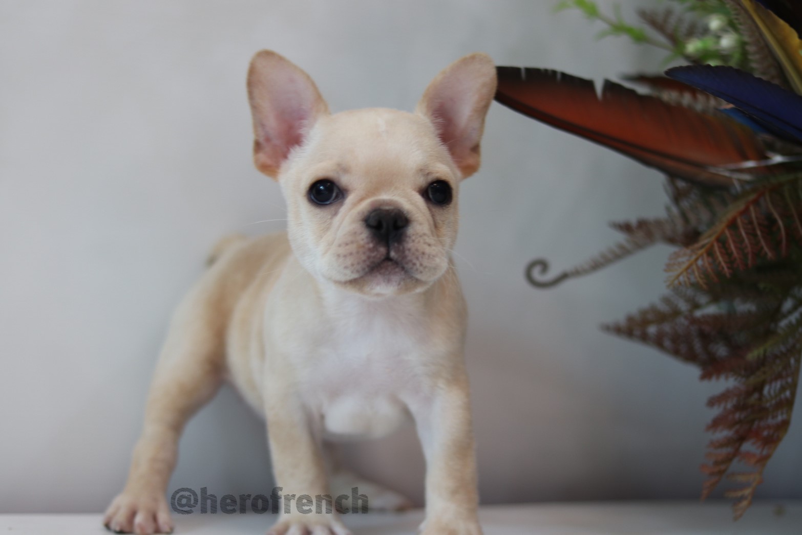 เฟรนช์บลูด็อก เพศเมีย สีครีม หน้าสั้น ใบหูสั้น ขี้เล่น น่ารัก ทรงสวย อายุ 2 ดือน