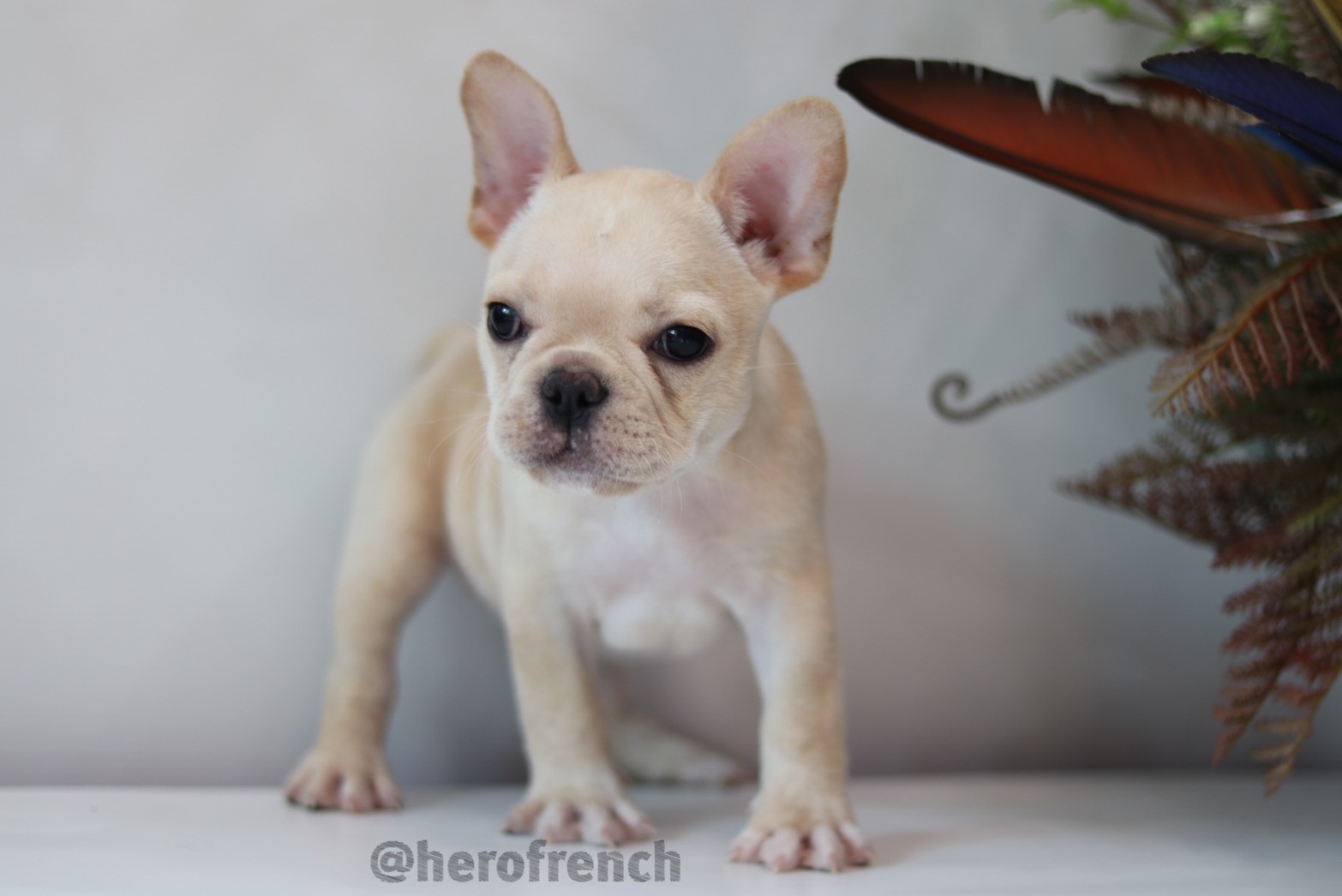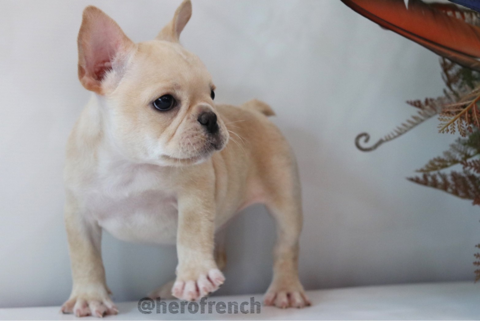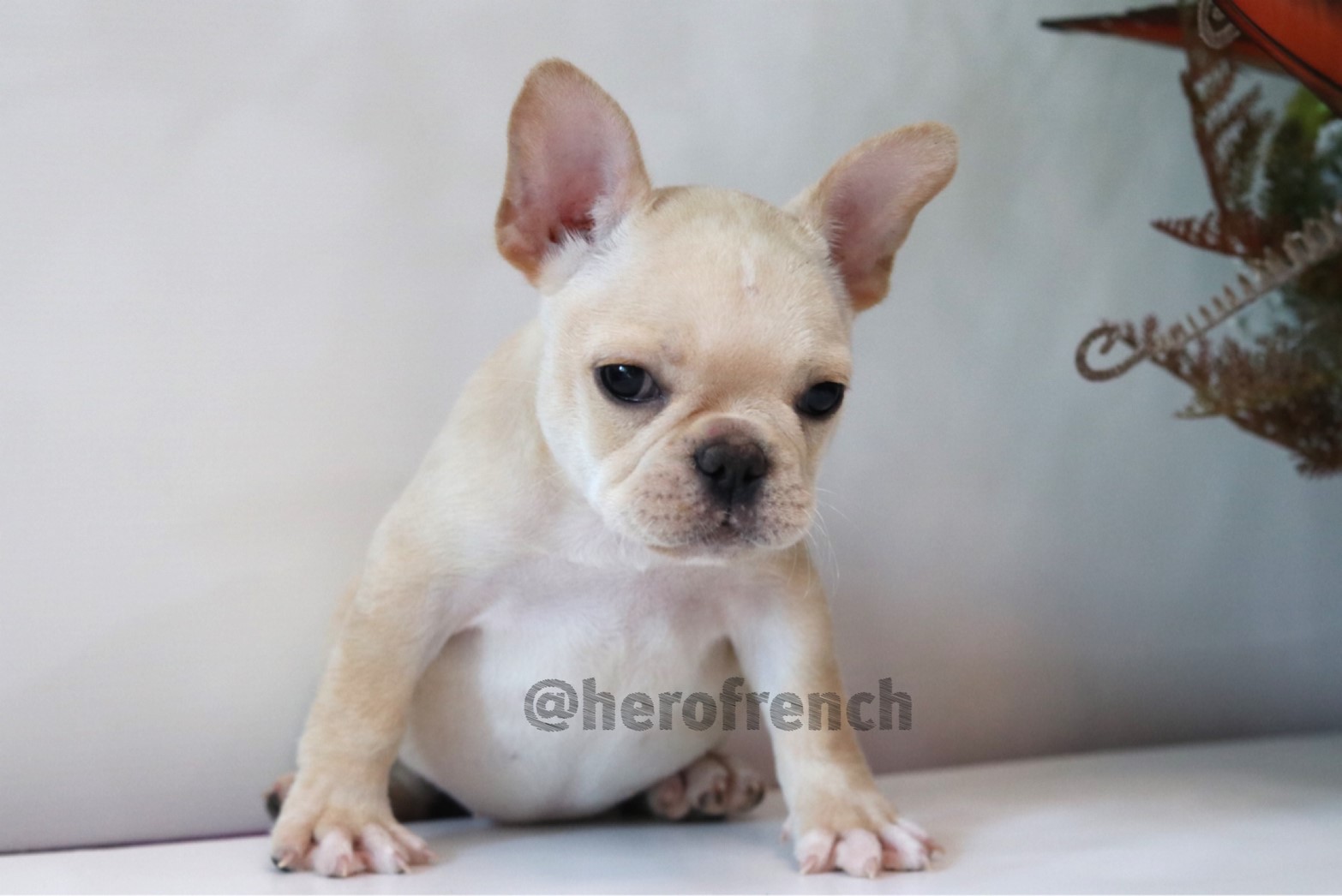 เฟรนช์บลูด็อก เพศเมียสีครีม หน้าสั้น ใบหูสั้น ขี้เล่น น่ารัก ทรงสวย อายุ 2 ดือน