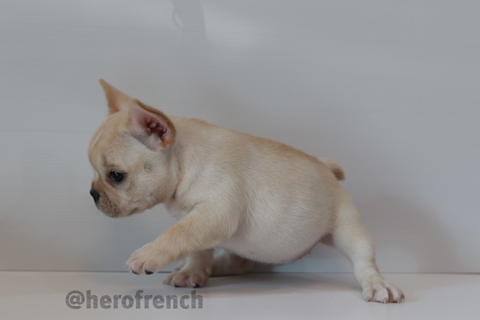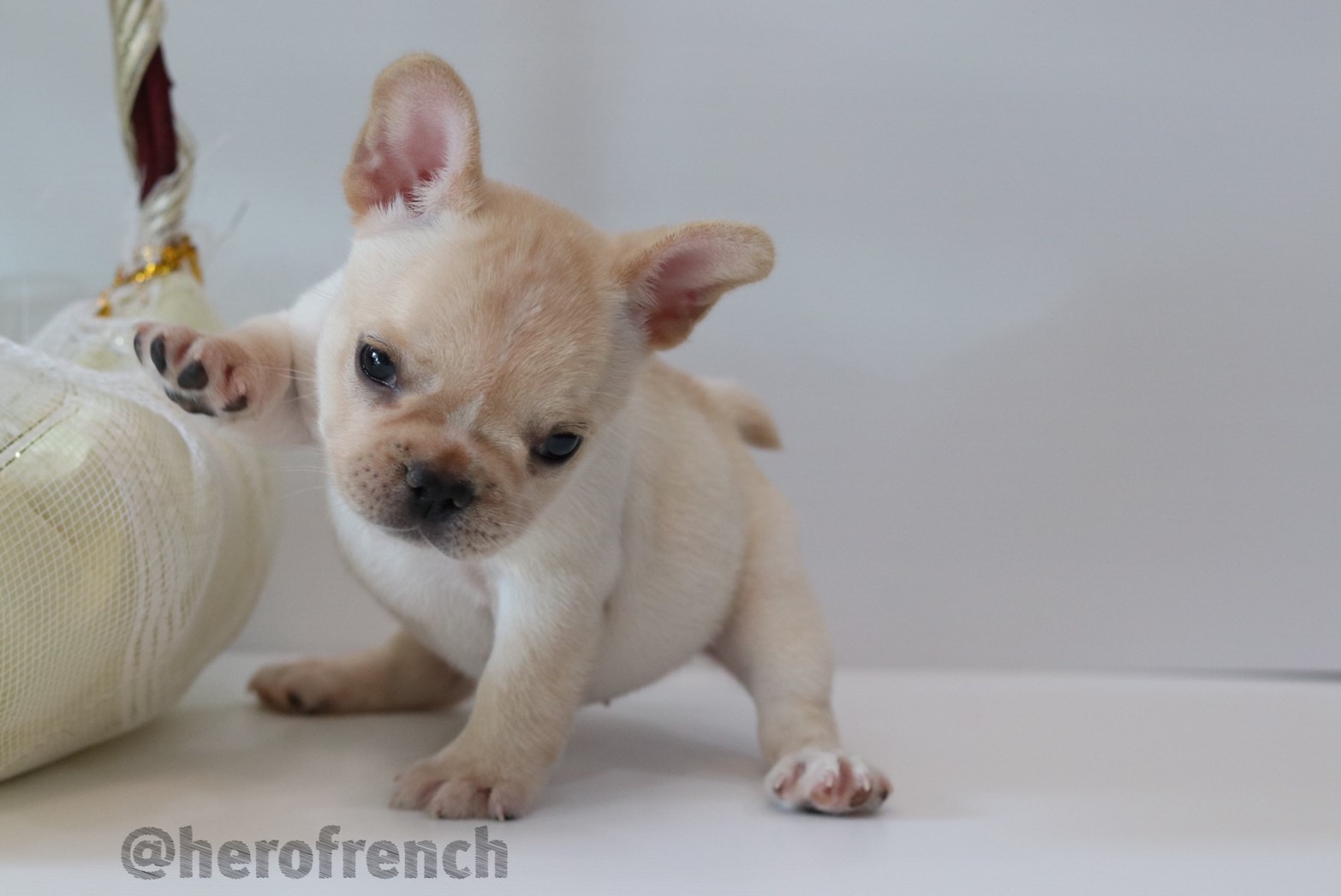 เฟรนช์บลูด็อก เพศเมียสีครีม หน้าสั้น ใบหูสั้น ขี้เล่น น่ารัก ทรงสวย อายุ 2 ดือน
