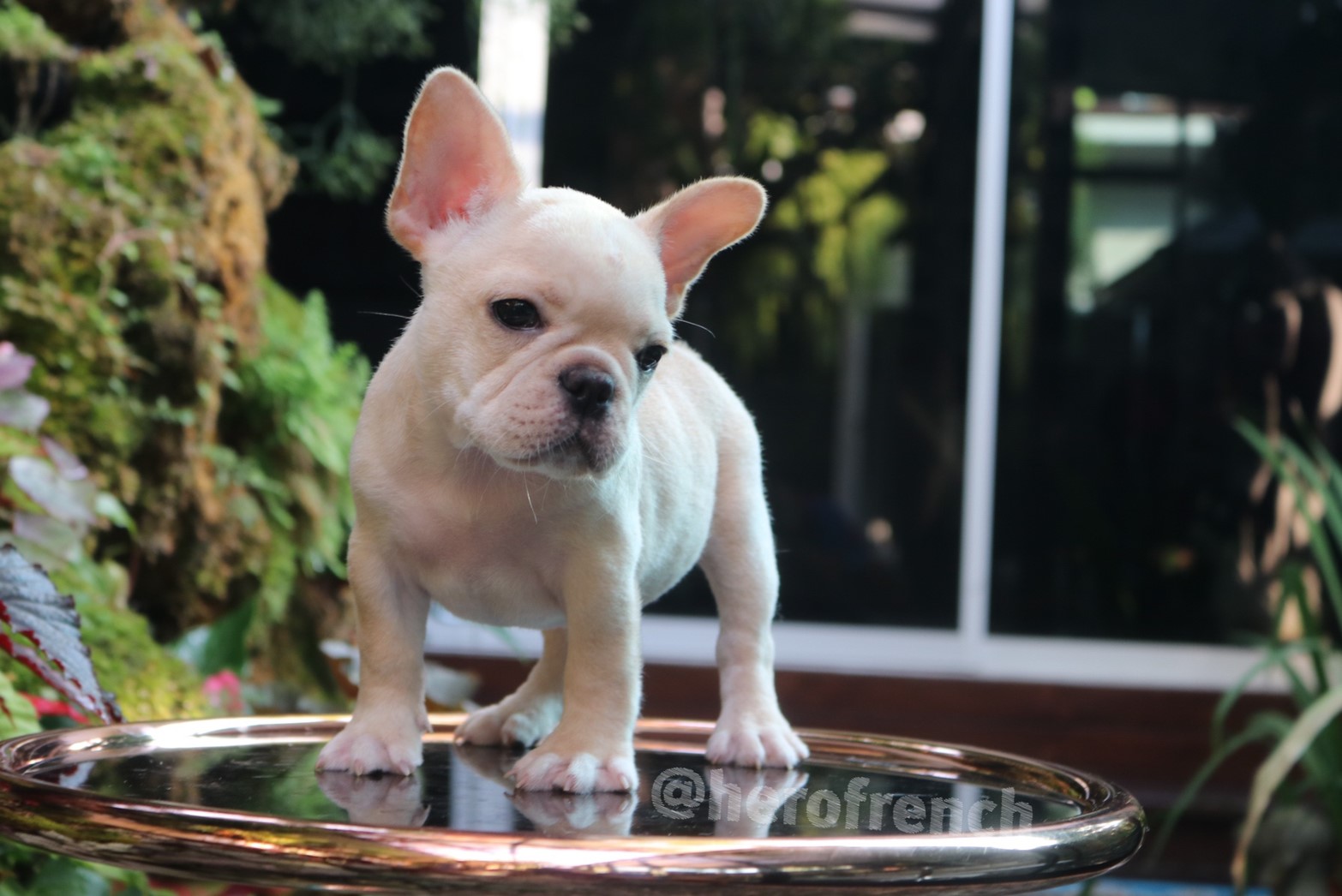 เฟรนช์บลูด็อก เพศเมียสีครีม หน้าสั้น ใบหูสั้น ขี้เล่น น่ารัก ทรงสวย อายุ 2 ดือน