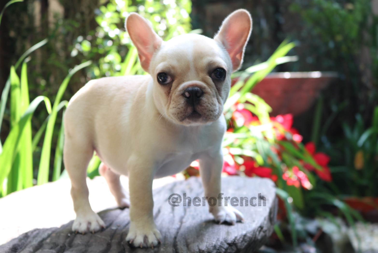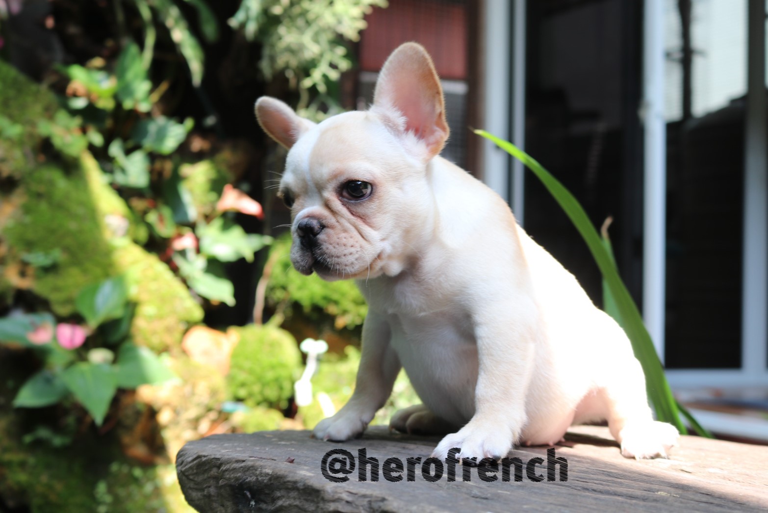 เฟรนช์บลูด็อก เพศเมียสีครีม หน้าสั้น ใบหูสั้น ขี้เล่น น่ารัก ทรงสวย อายุ 2 ดือน