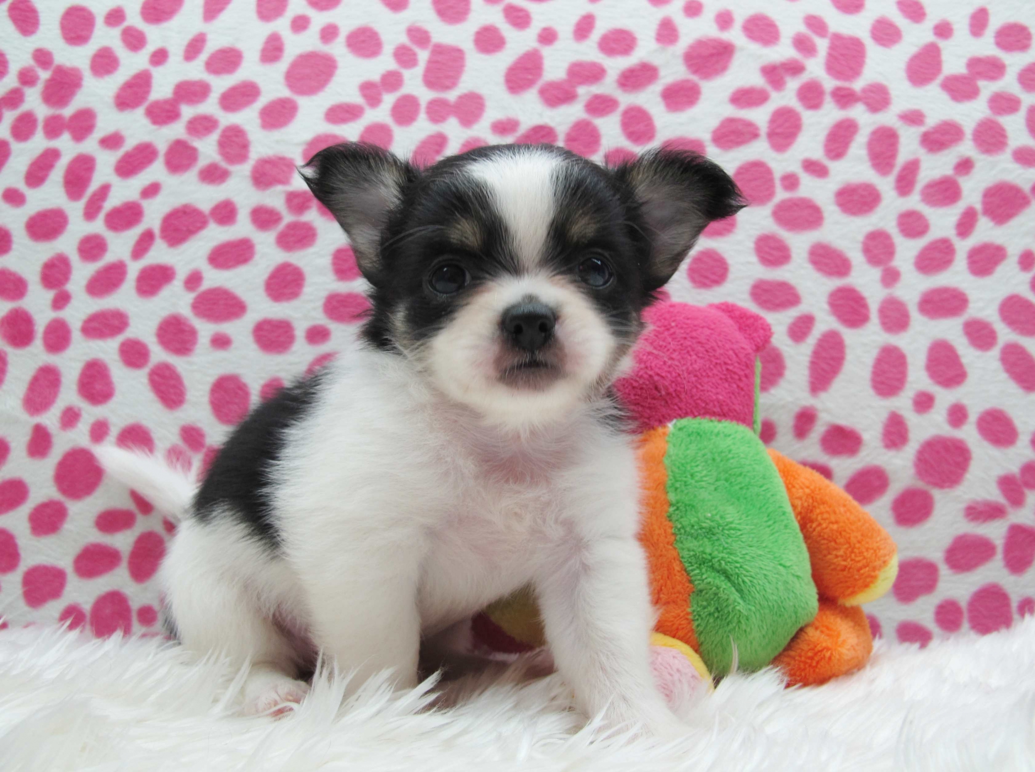 ชิวาวา ขนยาว เพศเมีย สีดำแฟนซี หัวสวย อ้วนจ้ำม่ำ (น้องเป็นสุนัขบ้าน+รับประกันโรค)