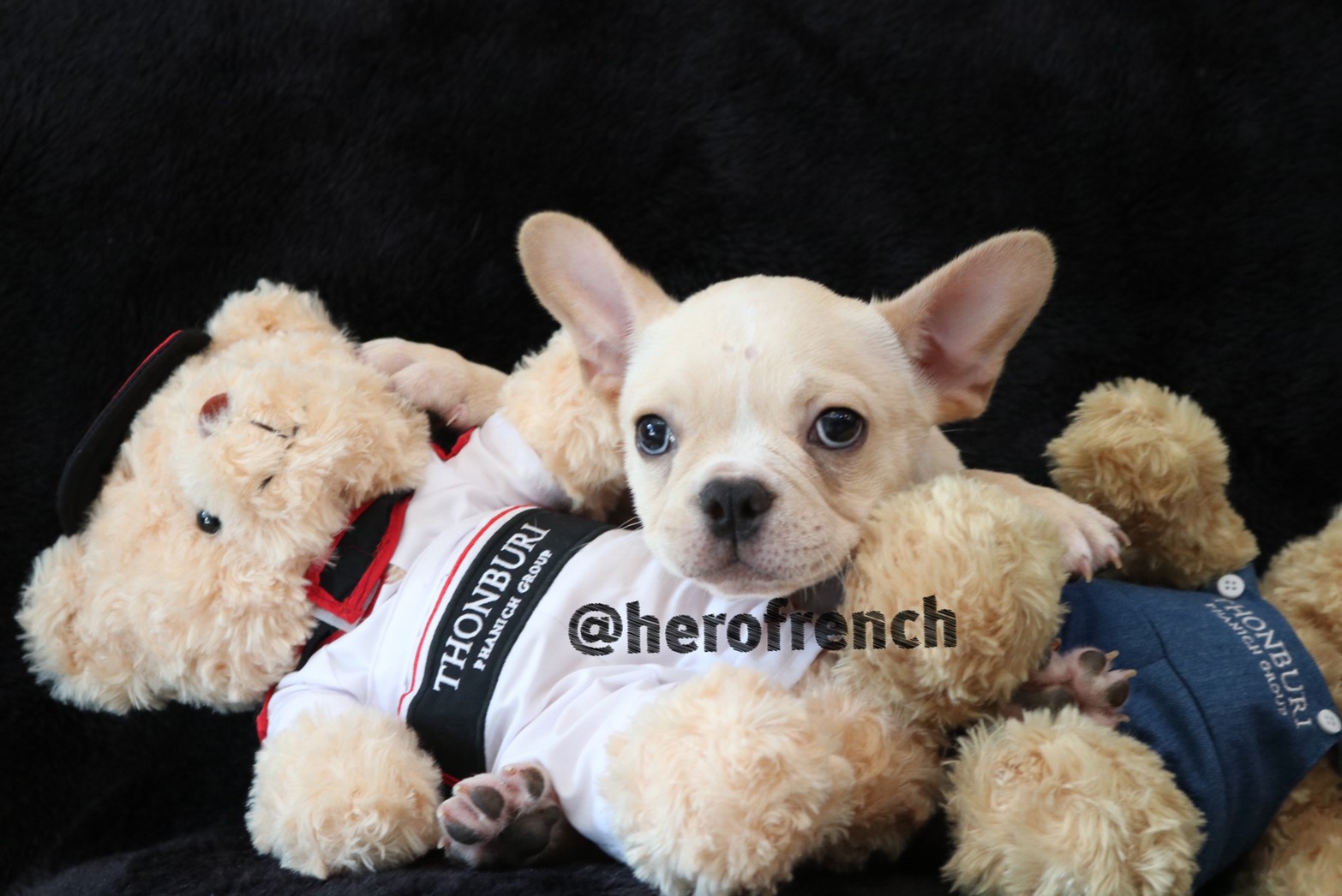 เฟรนช์บลูด็อก เพศผู้ สีครีม หน้าสั้น ใบหูสั้น ขี้เล่น น่ารัก ทรงสวย อายุ 2 ดือน สุขภาพแข็งแรง