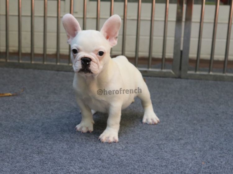 เฟรนช์บลูด็อก เพศเมีย สีขาว หน้าสั้น ใบหูสั้น ขี้เล่น น่ารัก ทรงสวย อายุ 2 ดือน