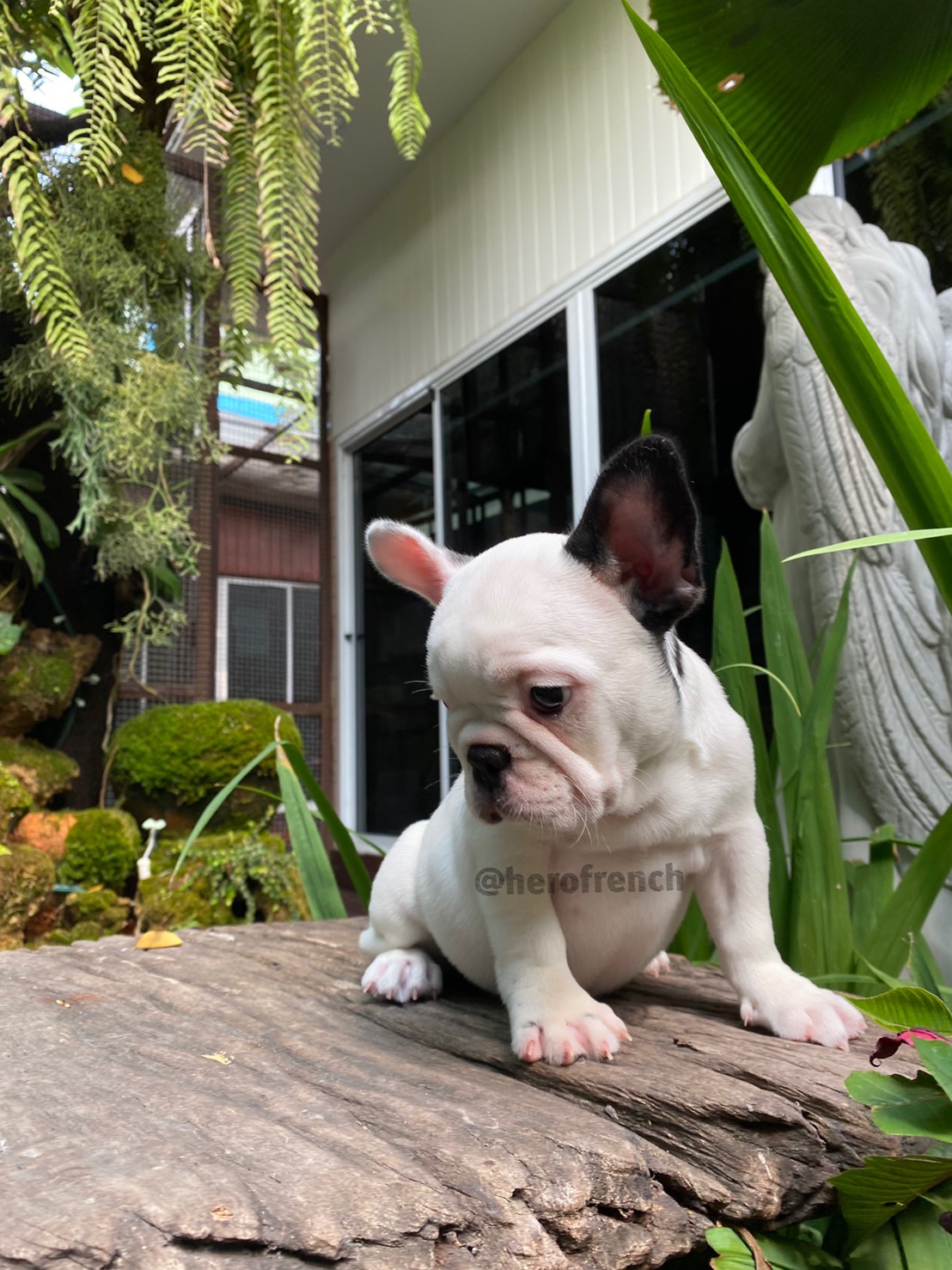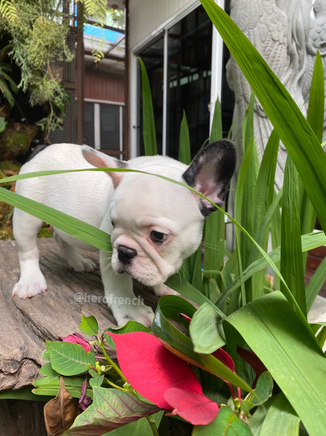 เฟรนช์บลูด็อก เพศเมีย สีขาวดำ หน้าสั้น ใบหูสั้น ขี้เล่น น่ารัก ทรงสวย อายุ 2 ดือน