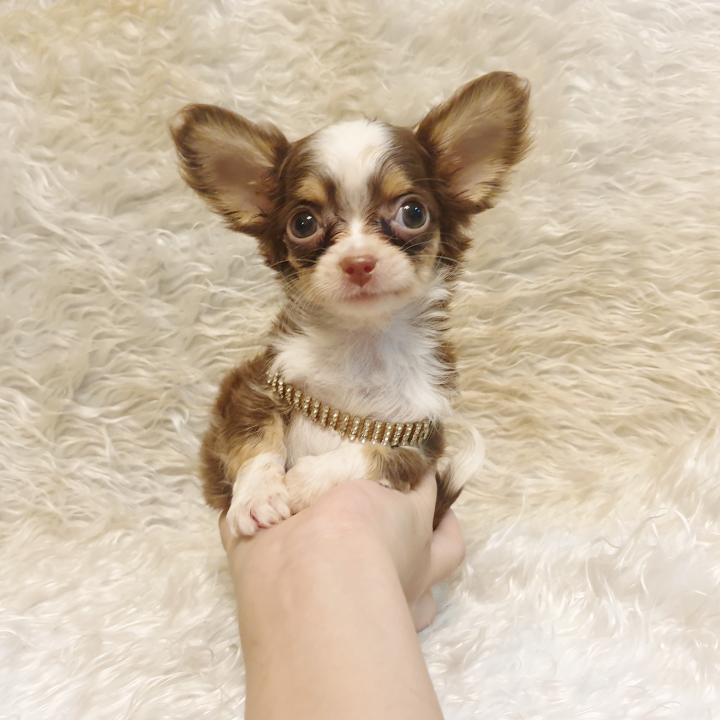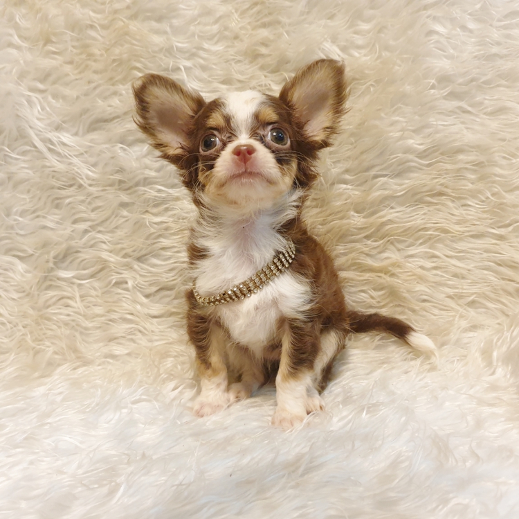 LITTLE DOG'S FARM : จองแล้วคะ สาวน้อยชิวาวาขนยาว สีแฟนซีสามสีชอคโกแลต คิ้วแก้มชัดๆ น่ารักๆจ้า