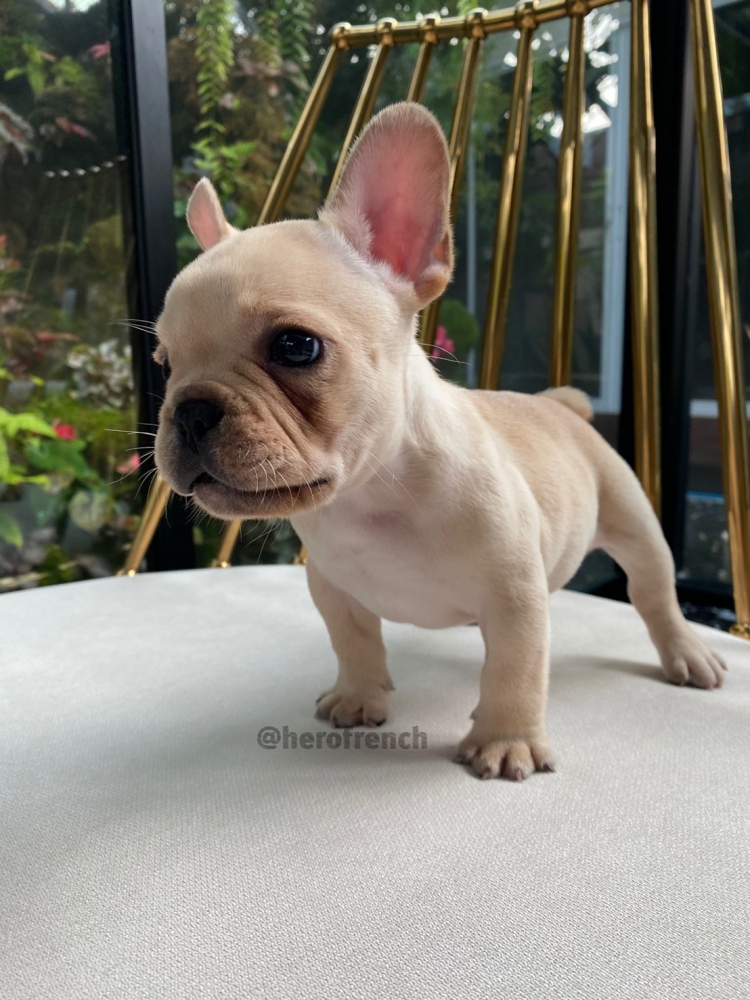 เฟรนช์บลูด็อก เพศผู้ สีครีม หน้าสั้น ใบหูสั้น โครงสร้างดี ทรงสวย อายุ 2 ดือน