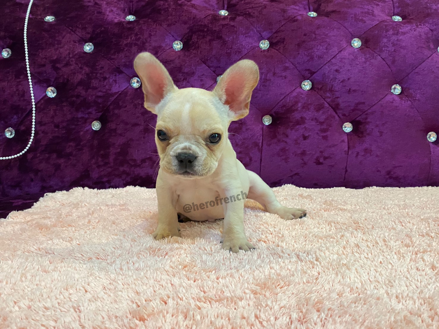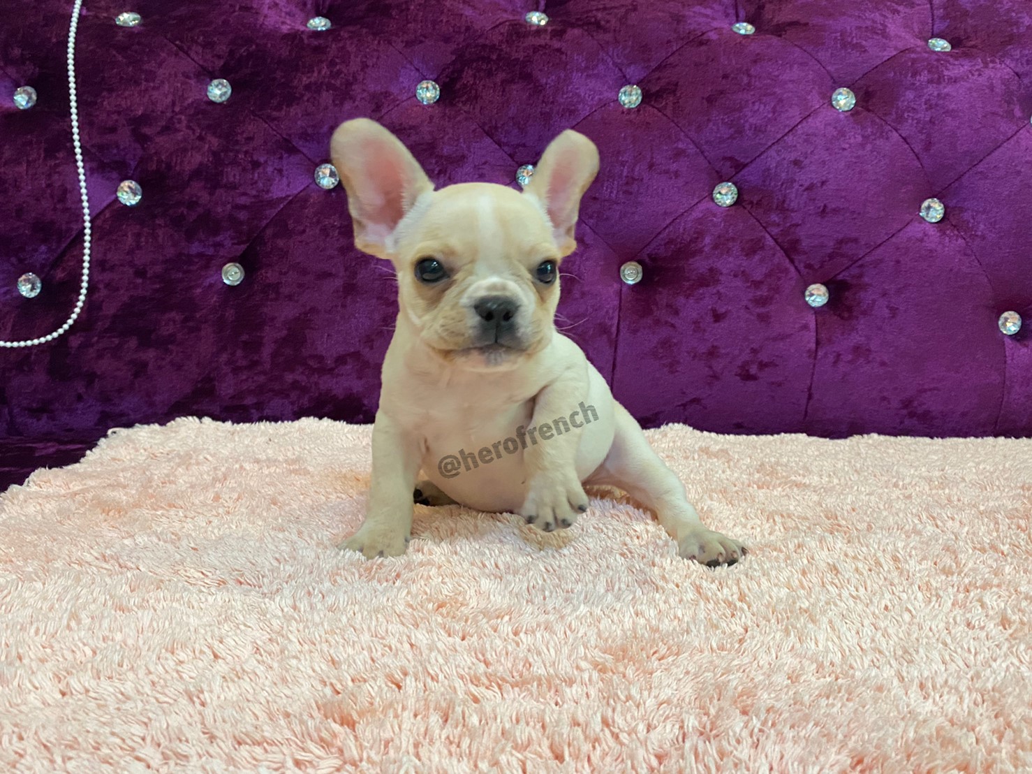 เฟรนช์บลูด็อก เพศผู้ สีครีม หน้าสั้น ใบหูสั้น โครงสร้างดี ทรงสวย อายุ 2 ดือน